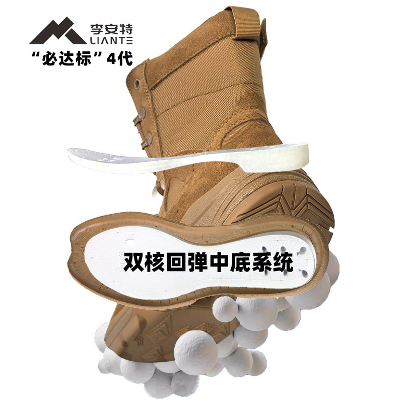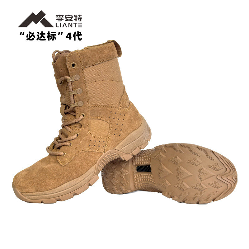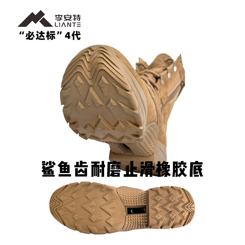 棕色套式作战训靴男超轻户外防水训练靴牛皮防穿刺耐磨沙漠靴
