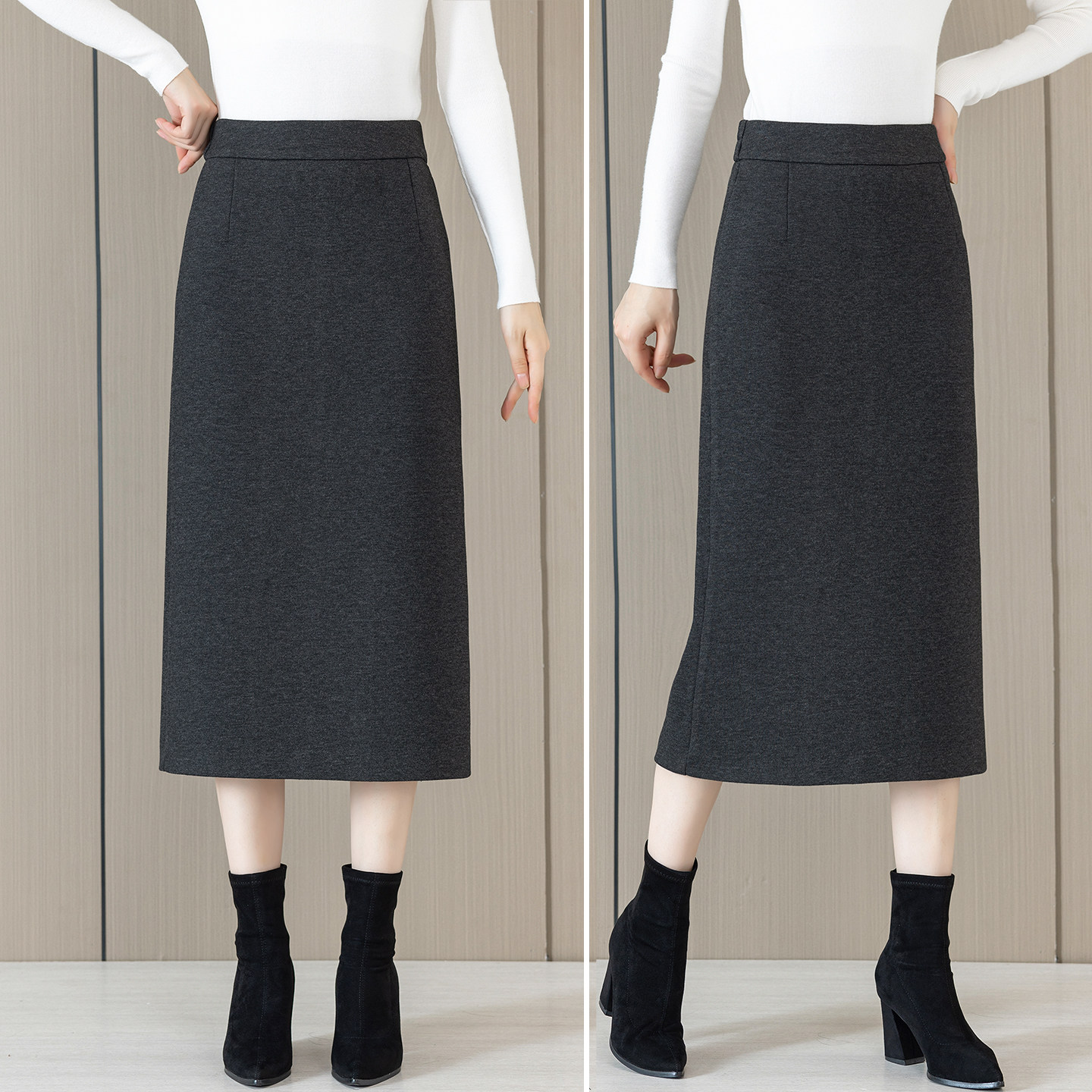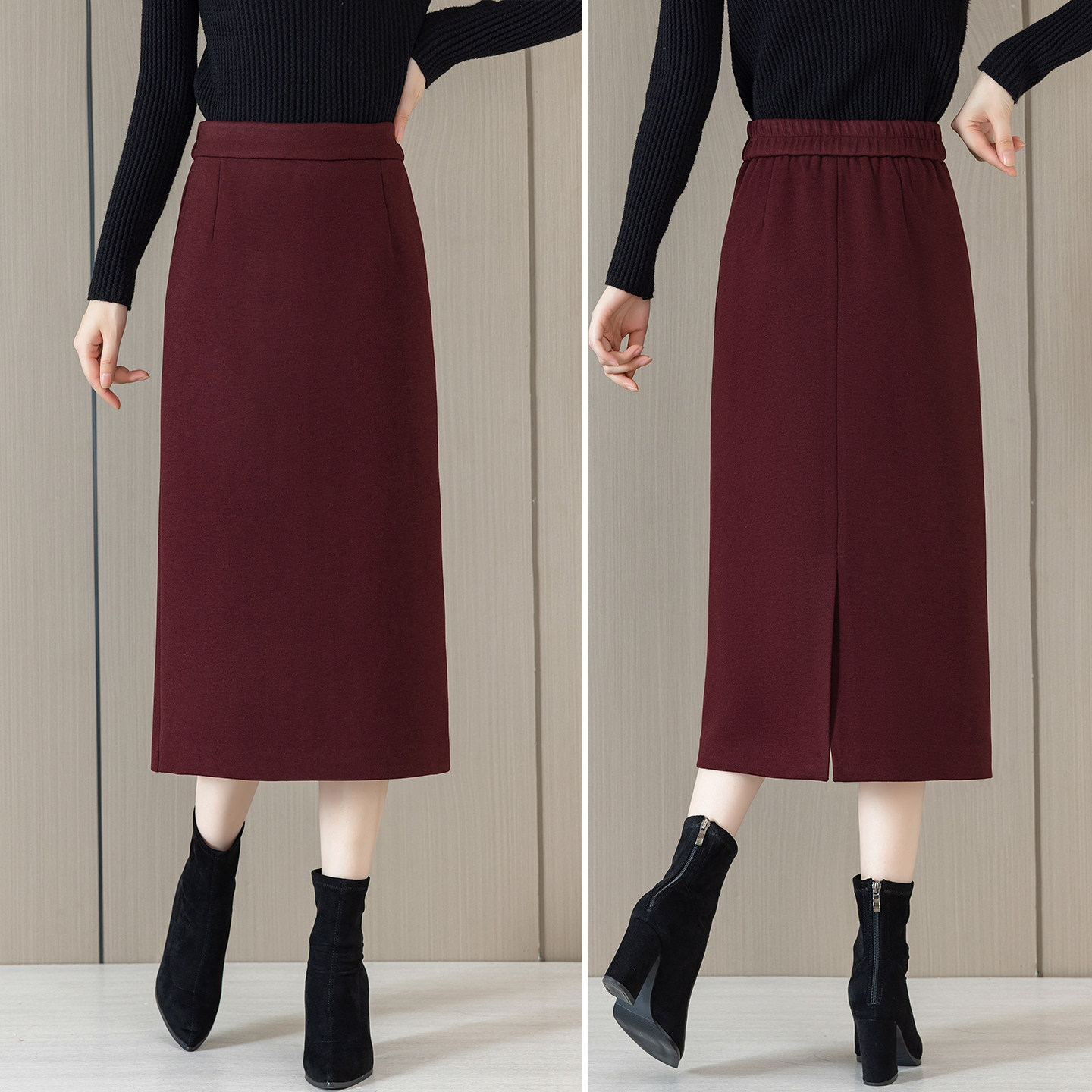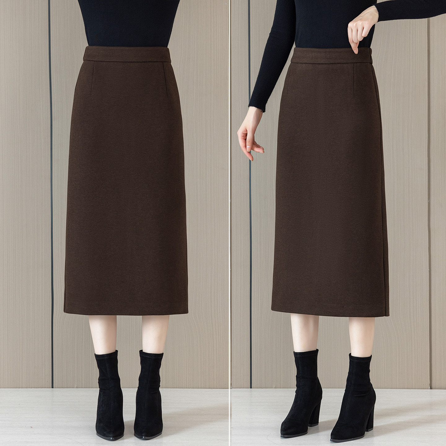 醋酸羊毛呢半身裙女春秋季2026新款高腰咖色中长款开叉一步包臀裙