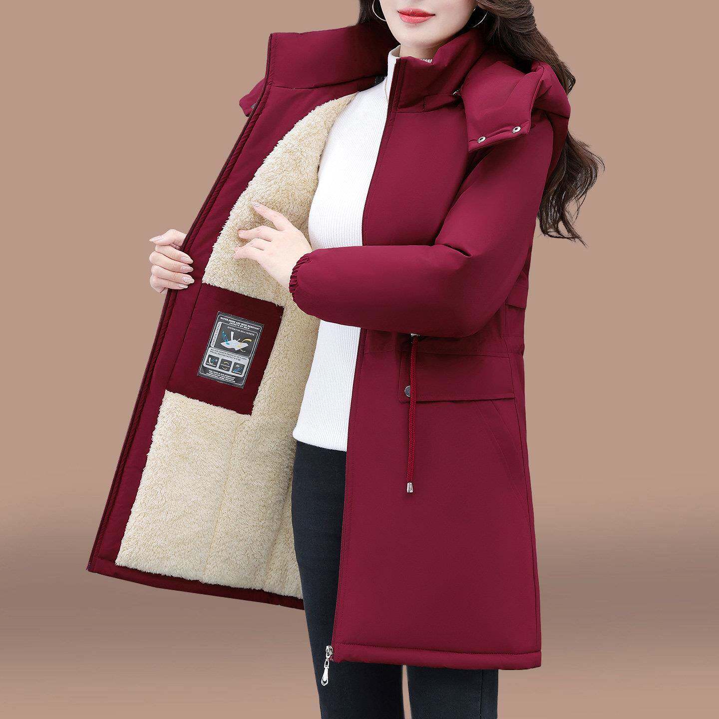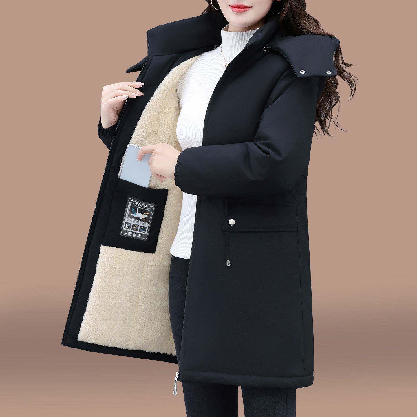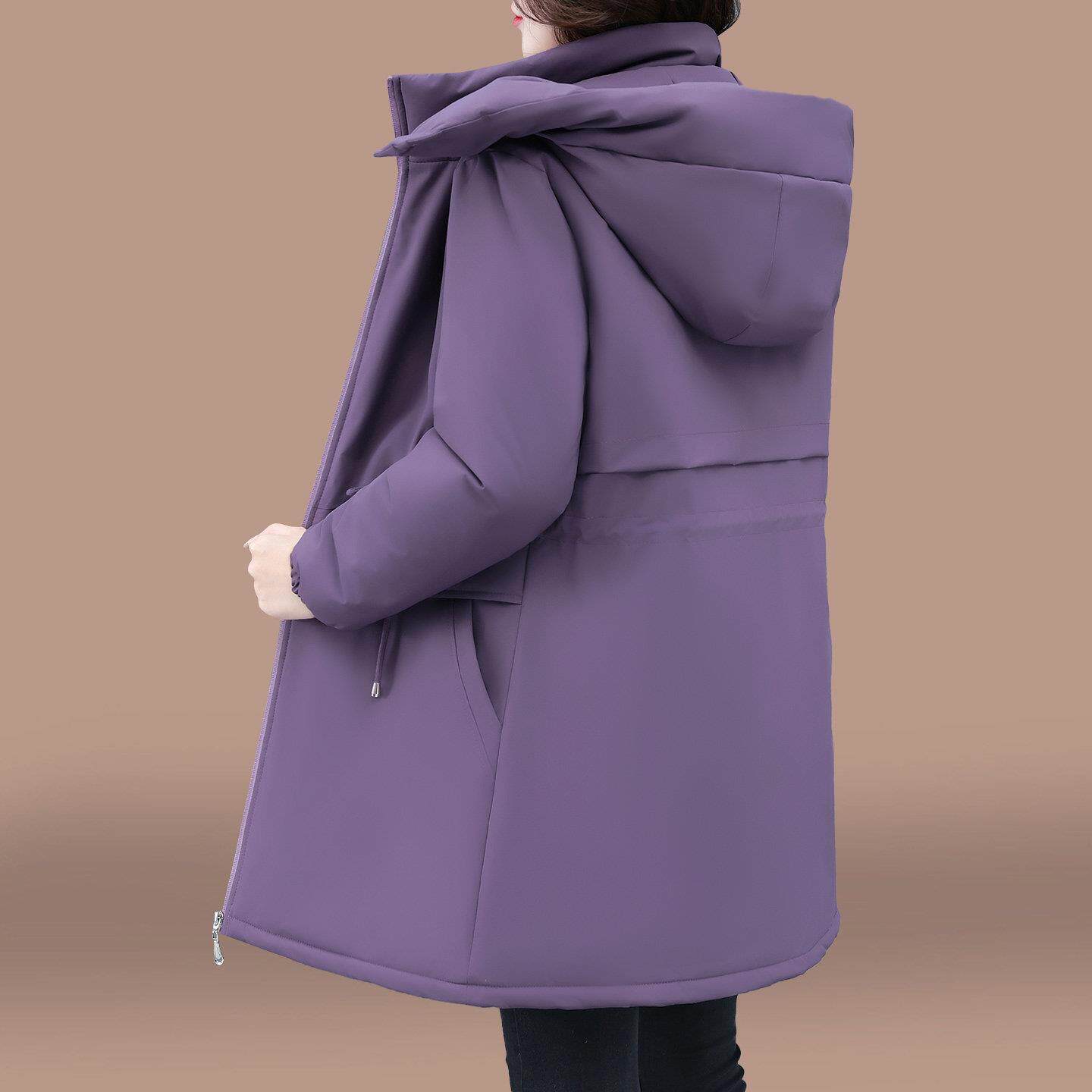 中长款风衣外套女2025新款冬季中年妈妈防风夹克加绒加厚紫色上衣
