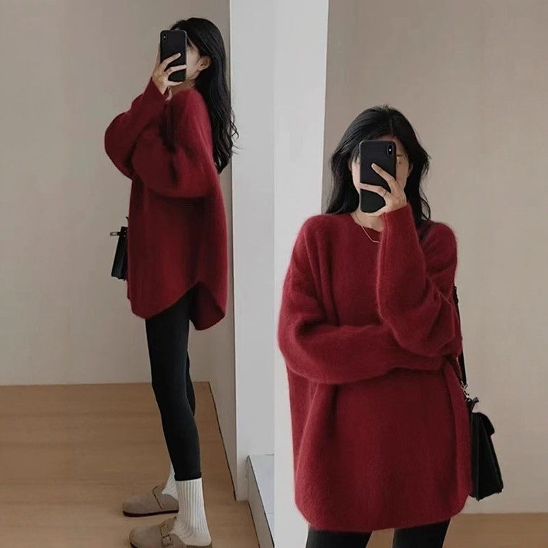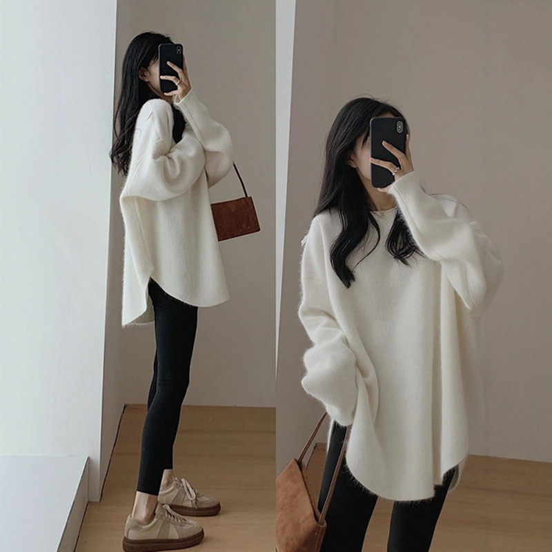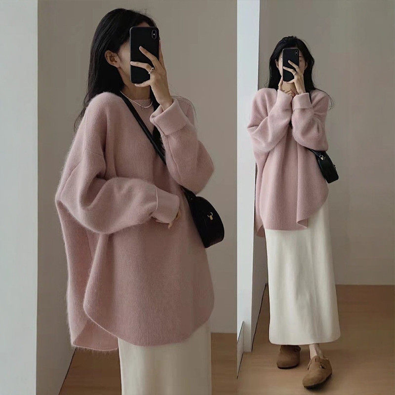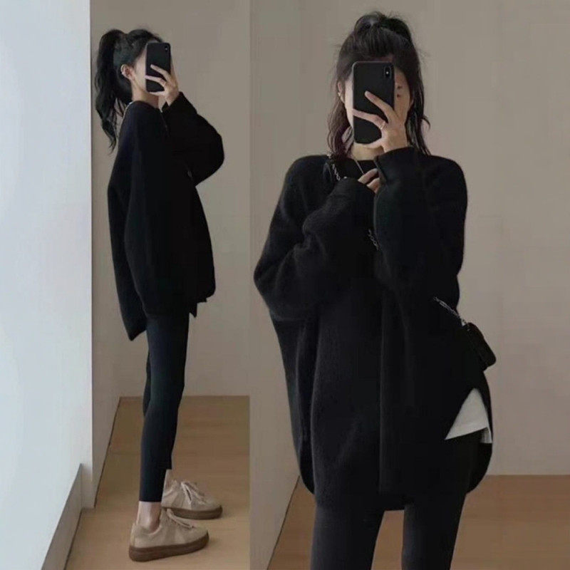 克莱因蓝色中长款针织衫女秋冬慵懒风遮屁股下装消失毛衣宽松上衣