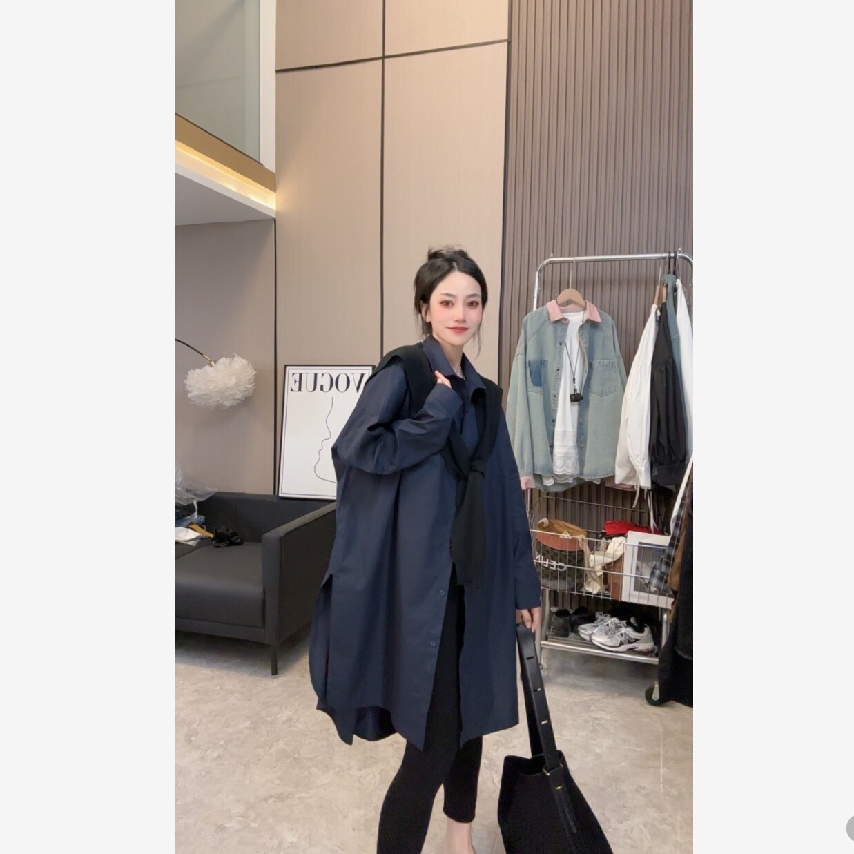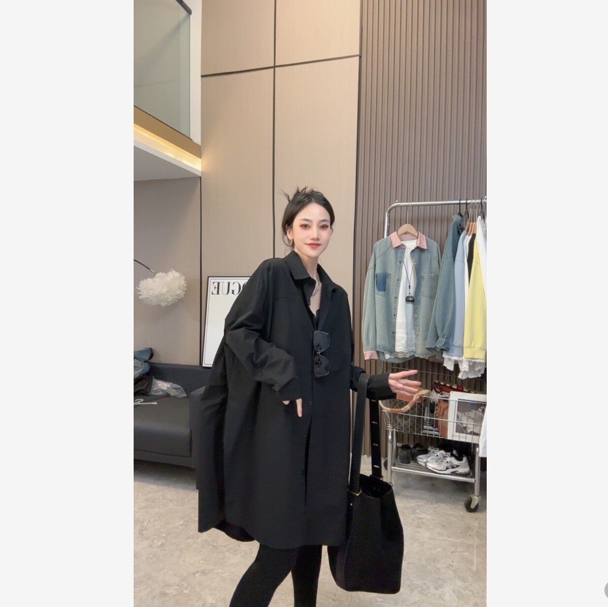 【拽姐风范】简约宽松长袖百搭长袖中长款衬衫连衣裙