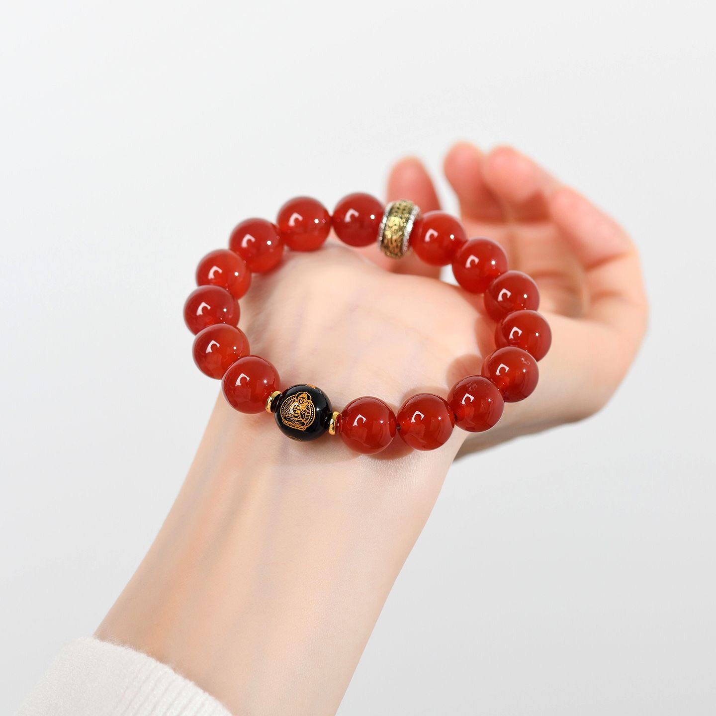 保真红玛瑙手链六字真言佛珠补火手串礼物本命年戴什么马年吉祥物