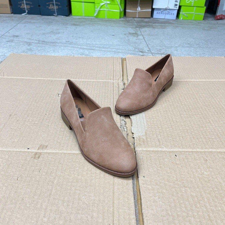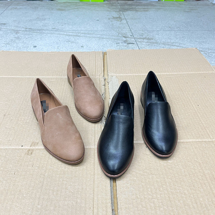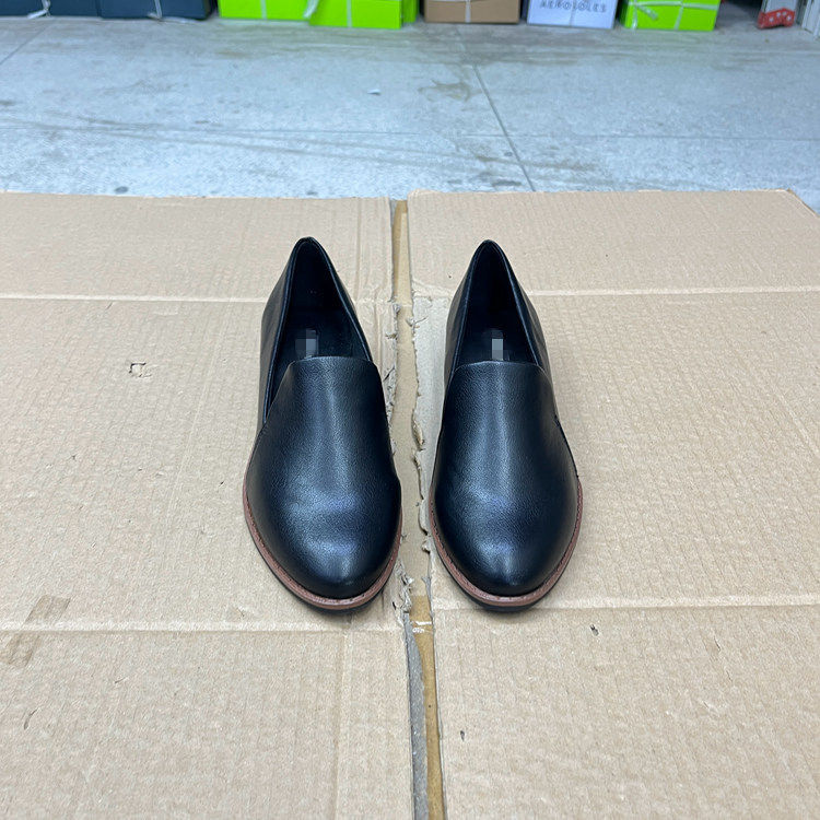 外面原单女鞋新款shoes尖头纯色粗跟简约休闲一脚蹬单鞋懒人鞋