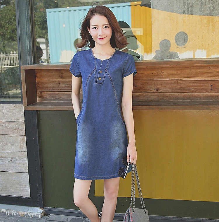 夏装连衣裙女2024夏新款韩版大码修身牛仔裙显瘦宽松牛仔裙a字裙
