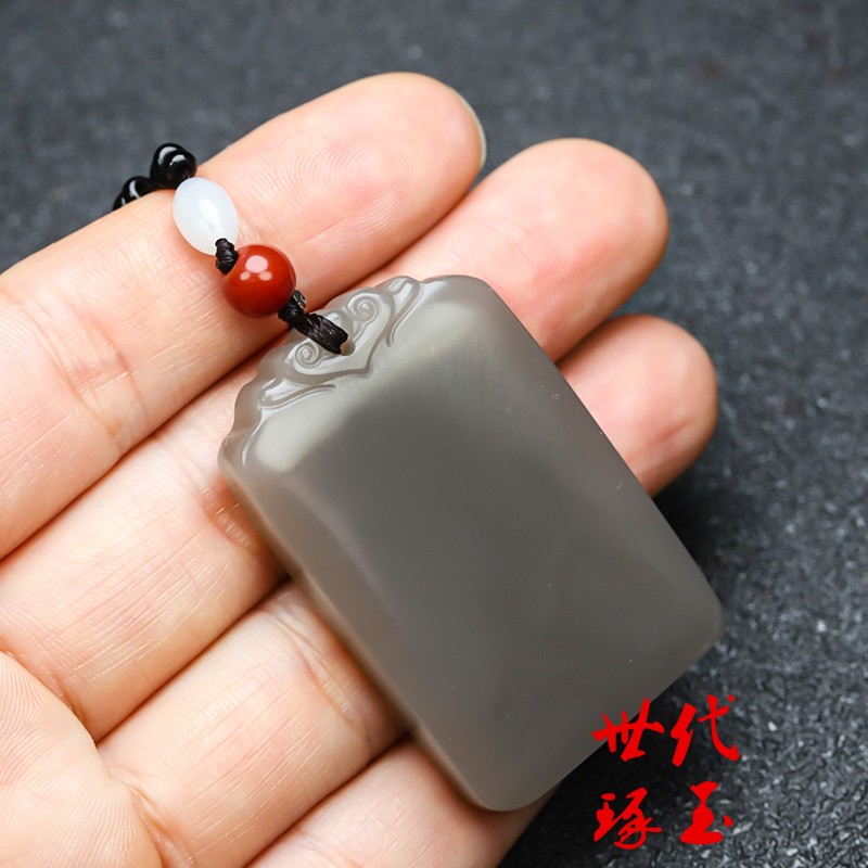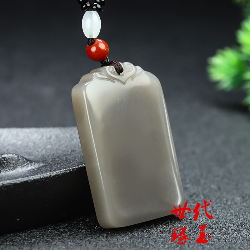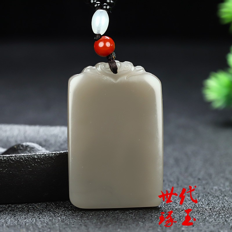 天然新疆和田玉平安无事牌吊坠玉石烟灰色无字牌挂件项链玉佩玉坠