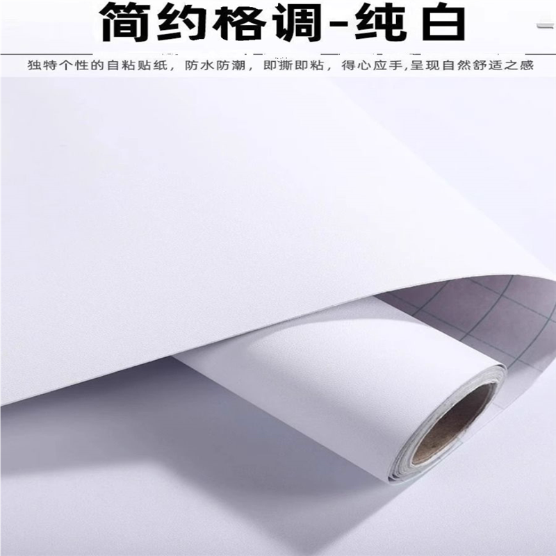 白色墙纸自粘防水防潮墙纸壁纸桌面衣柜宿舍家用装修腻子白自