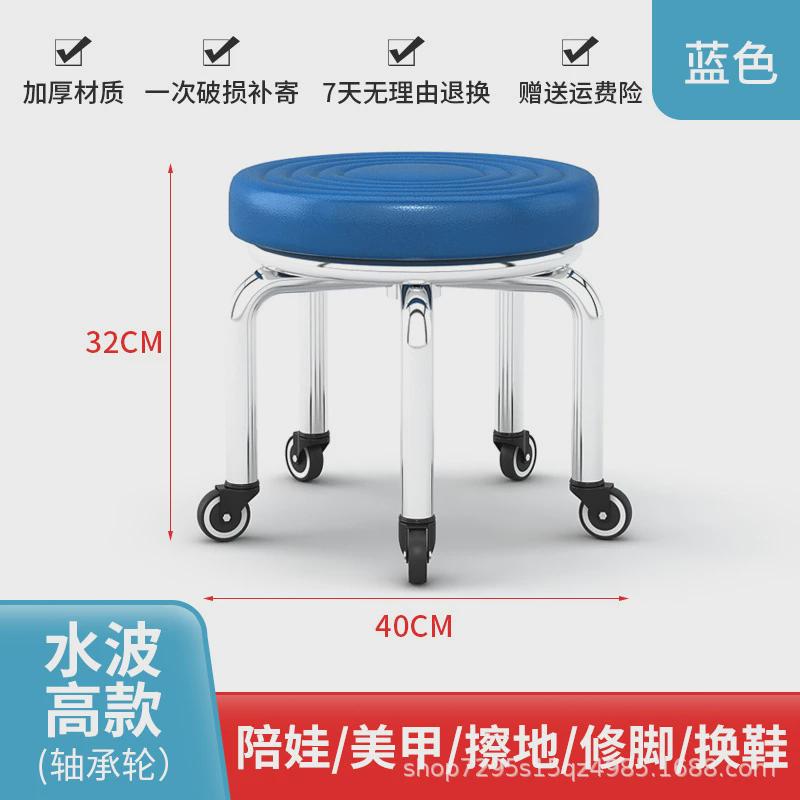 新款带轮足浴滑轮圆凳子美缝修脚小凳子家用万向轮矮凳儿童学步凳