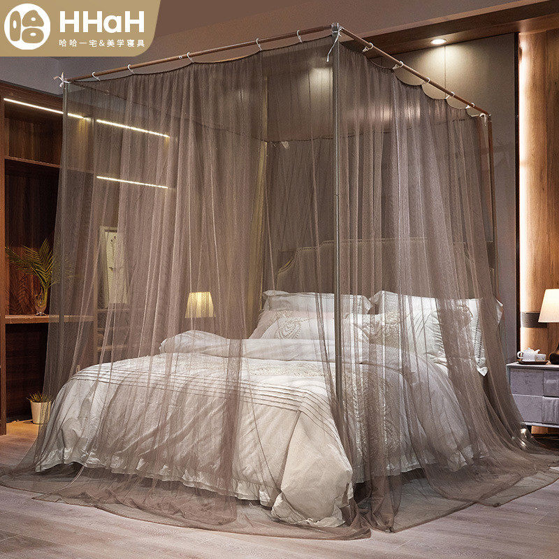 a6l三开门床上宫廷蚊帐1.8m床家用简约纯色老式落地式挂钩式1.5米