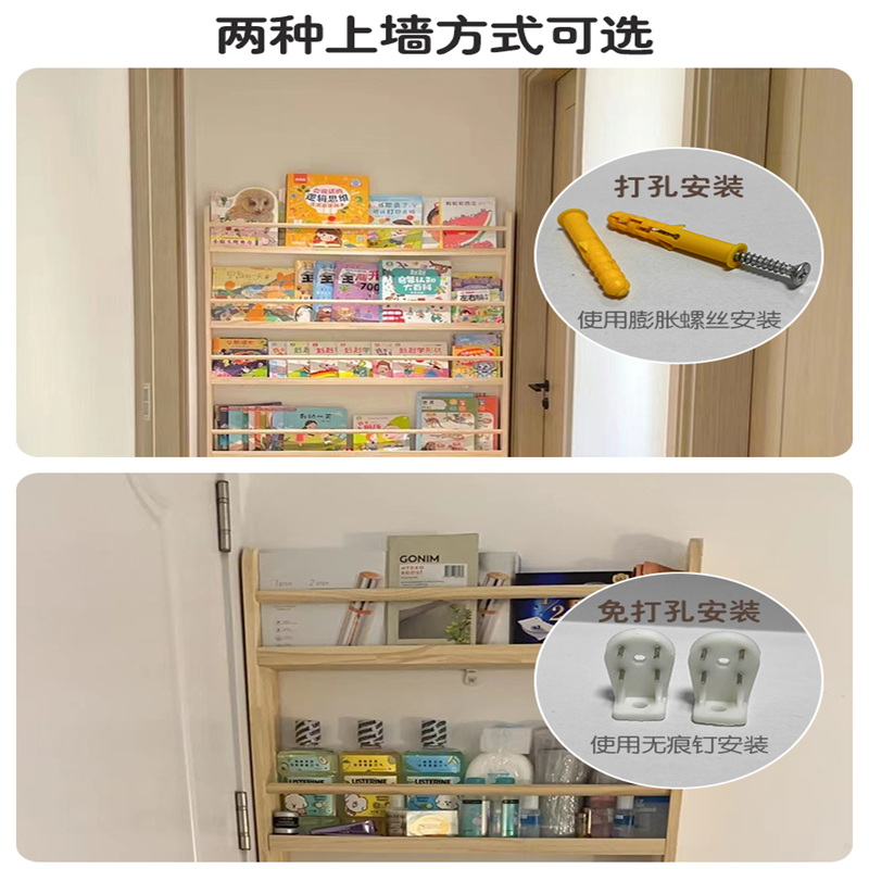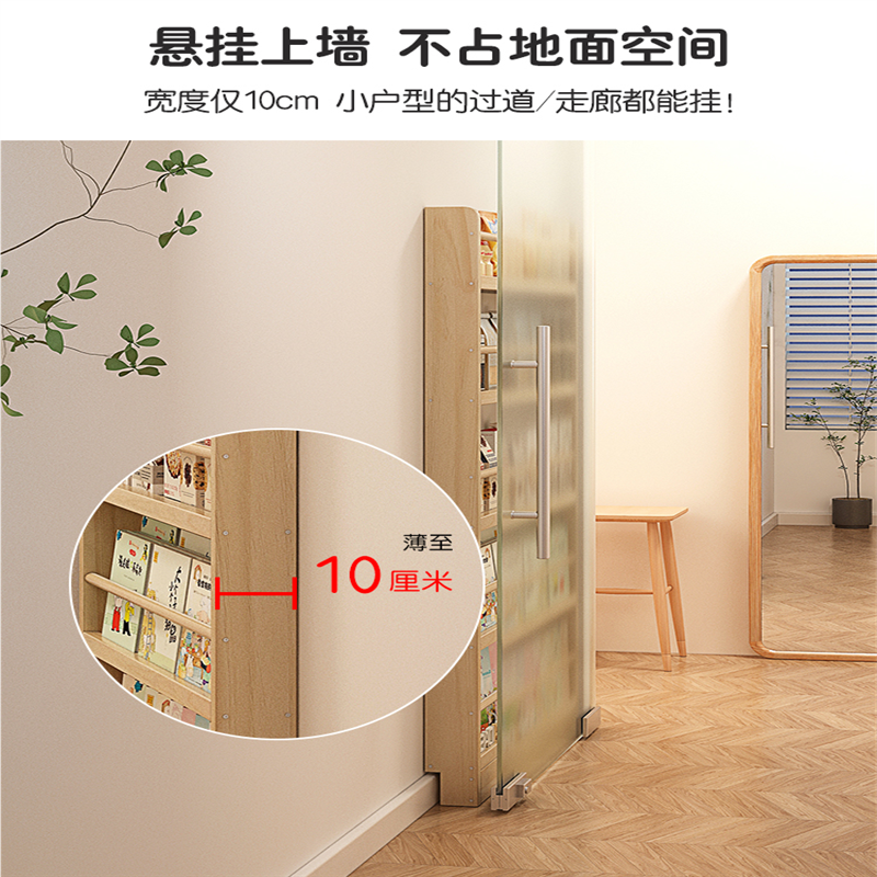 实木书架置物架落地壁挂多层阅读收纳架家用过道绘本架门后薄书柜