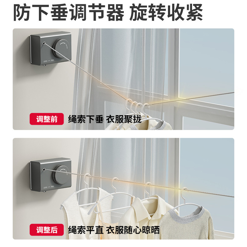 日本隐形晾衣绳阳台卫生间晾衣服绳子室内免打孔伸缩钢丝绳晾衣架