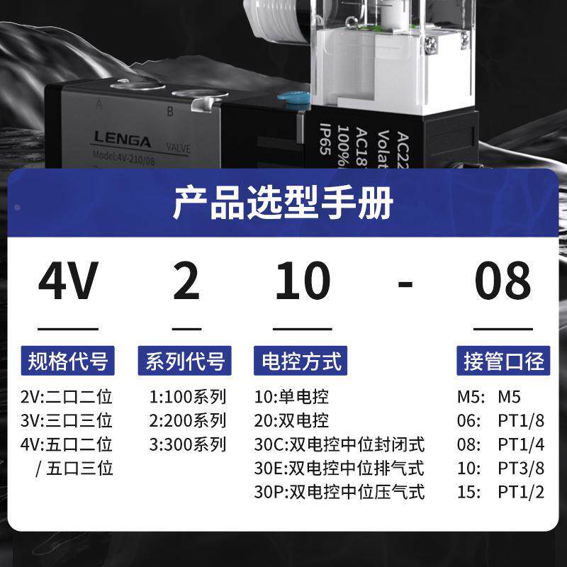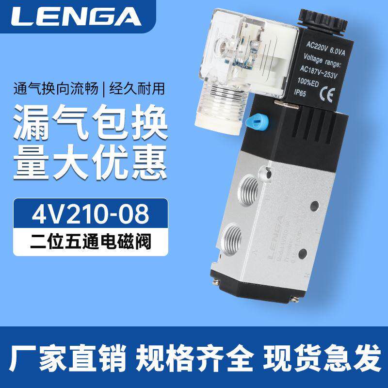 气动电磁阀4V210-08二位五通220V气缸电阀24V电磁控制阀换向气阀