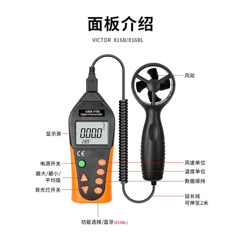手持式胜利数字风速计数显风量仪VC816B风温测试仪迷你袖珍风速计