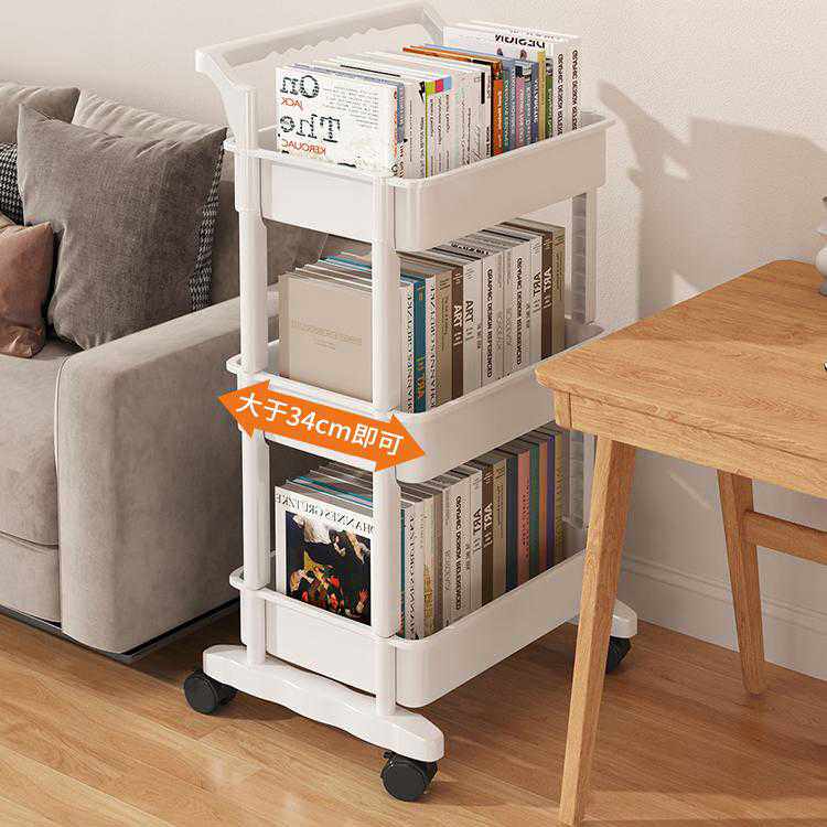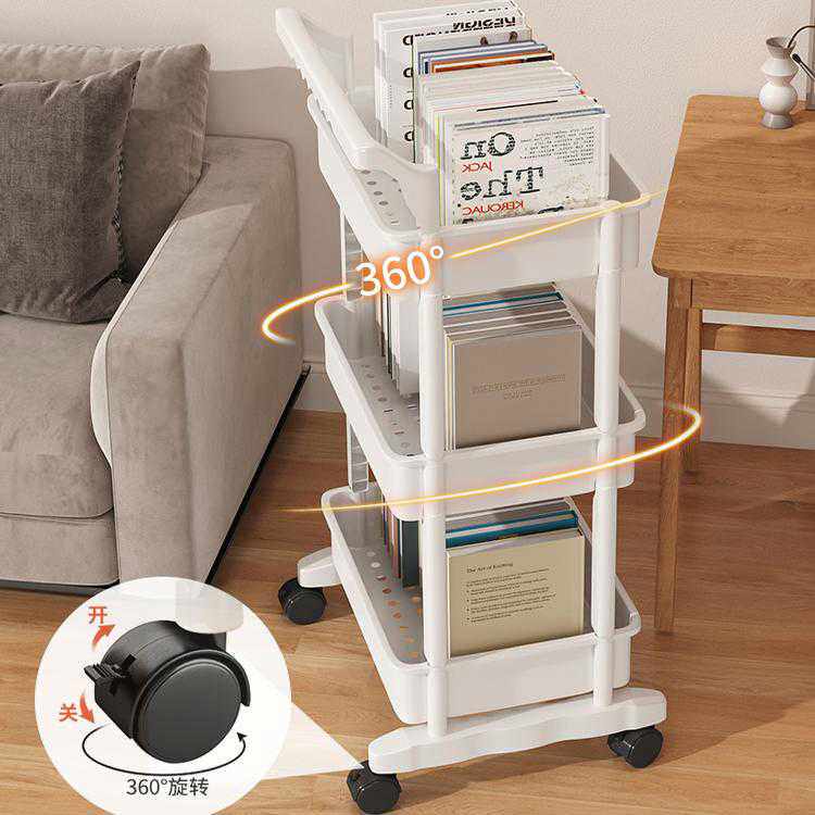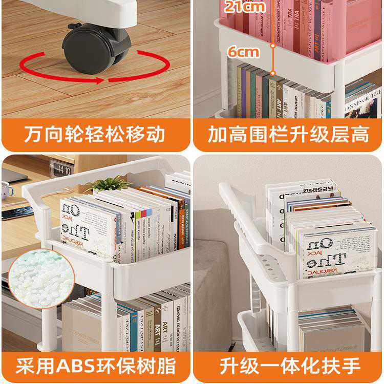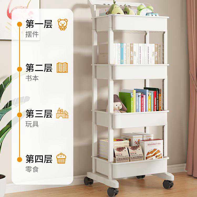 三梦书架置物架落地多层可移动带轮小推车零食桌面旁阅读收纳书柜