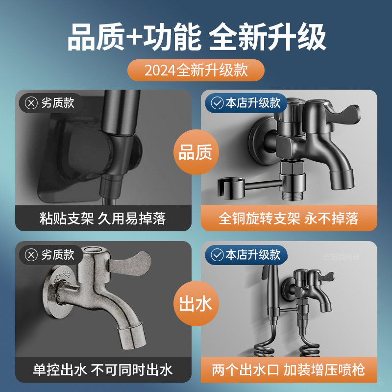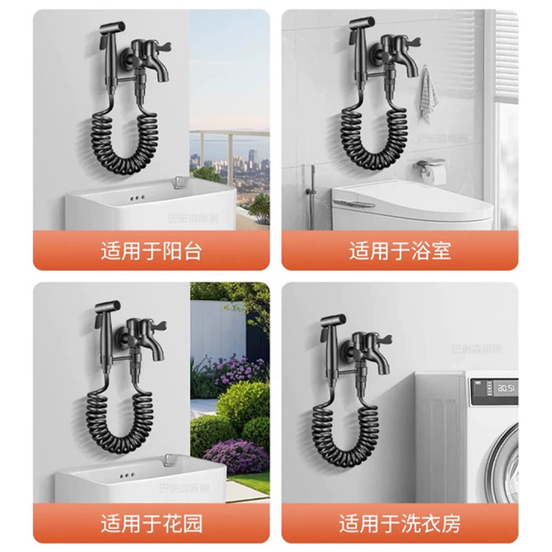 阳台拖把池双出水龙头带喷枪入墙式喷头洗衣机龙头多功能一进二出