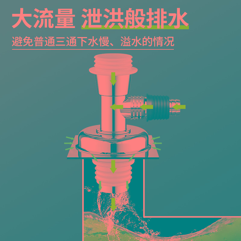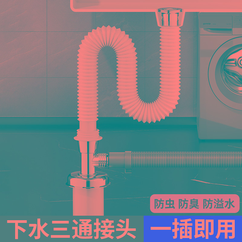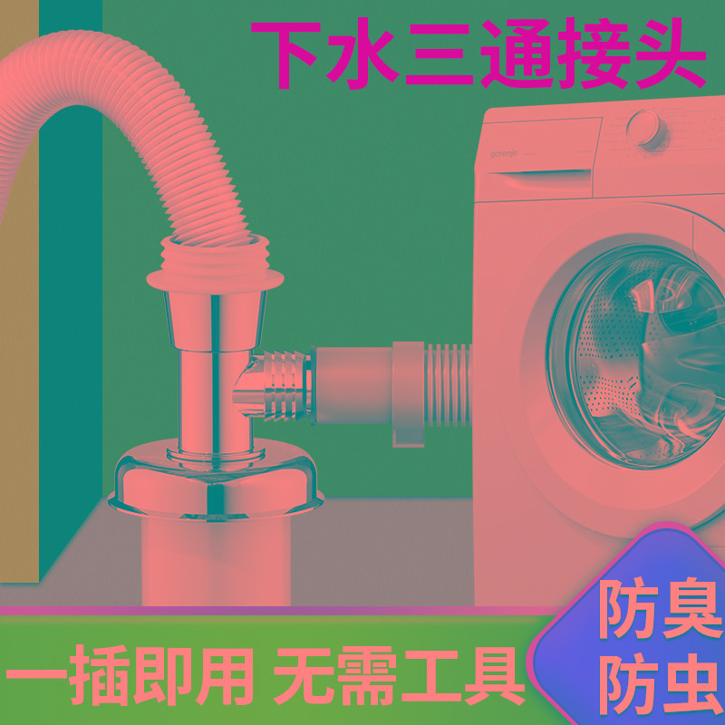 下水道三通接头洗脸盆排水管三通二合一分流器洗衣机地漏专用接头