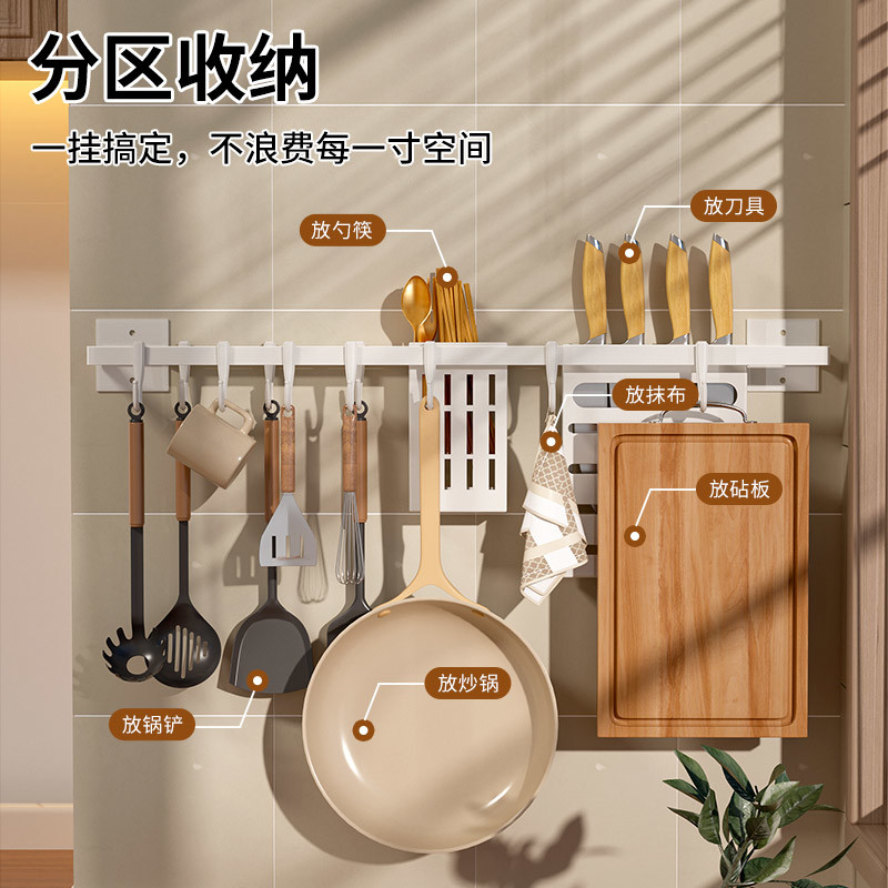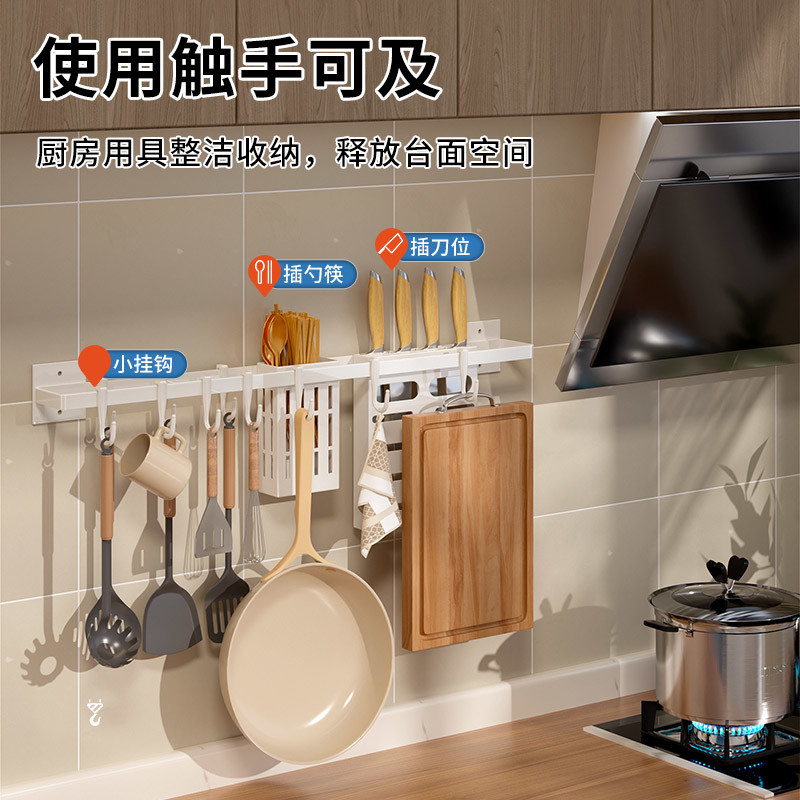 厨房挂钩免打孔锅铲置物架勺子壁挂厨具挂杆挂架排钩刀架收纳神器