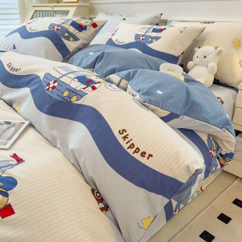新款全棉印花喷气四件套加厚磨毛批发学生宿舍春秋床单被套三件套