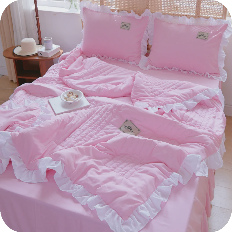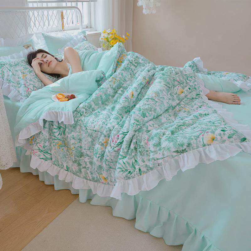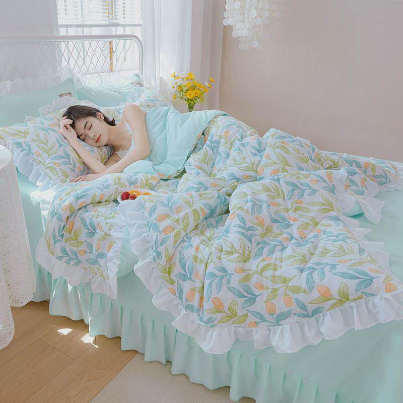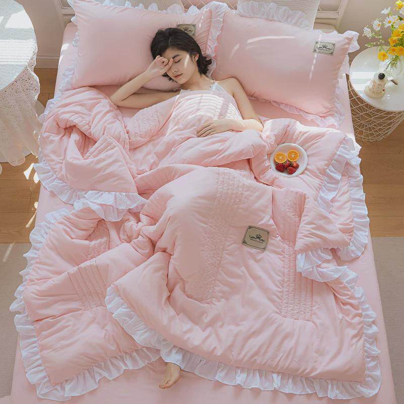 eq4f空调被四件套夏凉被韩版花边水洗棉夏被三件套单双人薄被子可
