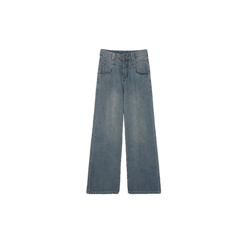 复古麦穗直筒牛仔裤女秋冬加绒胖妹妹mm高腰遮胯显瘦宽松阔腿裤子