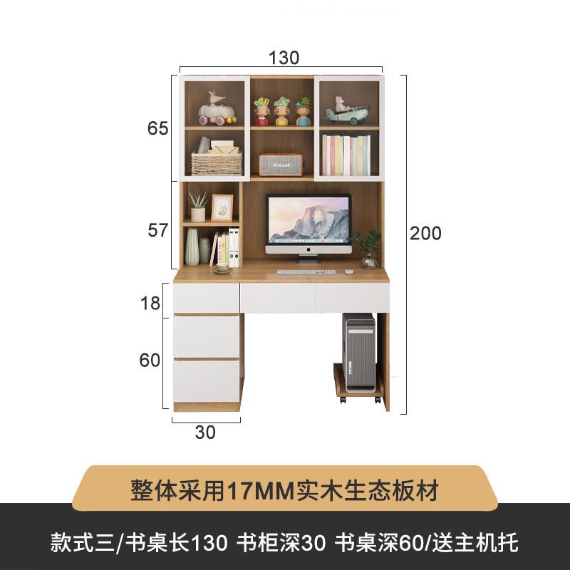 简约现代书架书桌一体小户型学习电脑桌书柜实木板省空间可新款