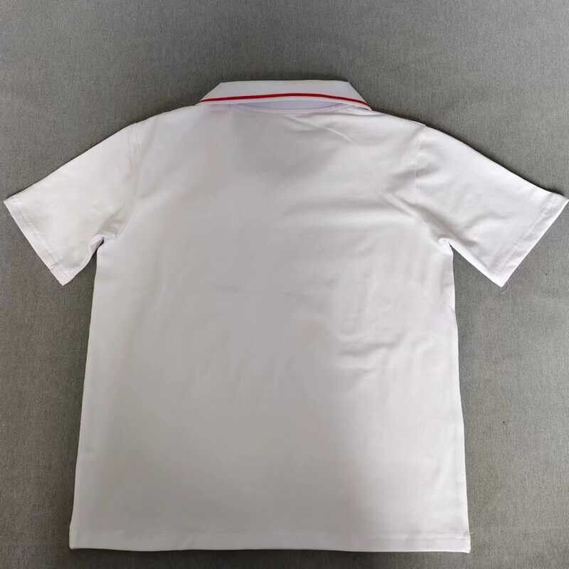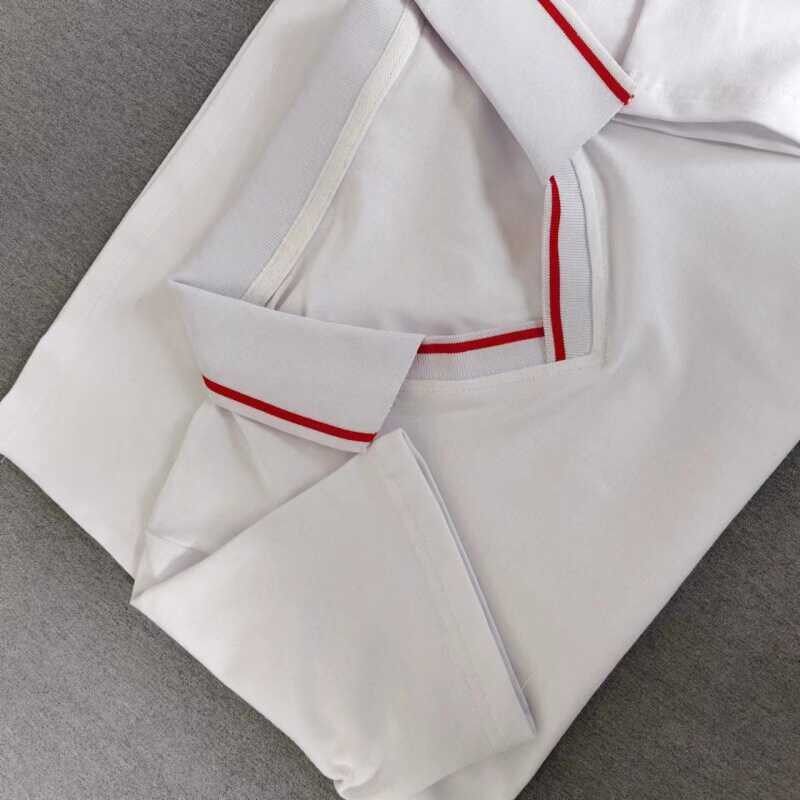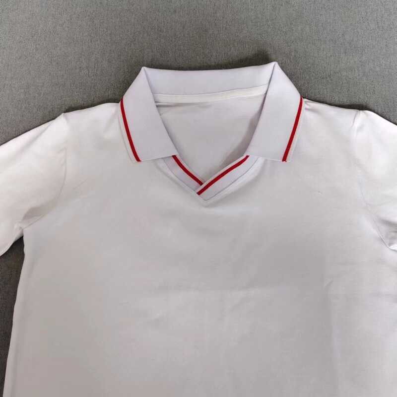 定做夏季男女校服同款纯棉短袖T恤衫白色加红翻领运动t恤衫polo衫