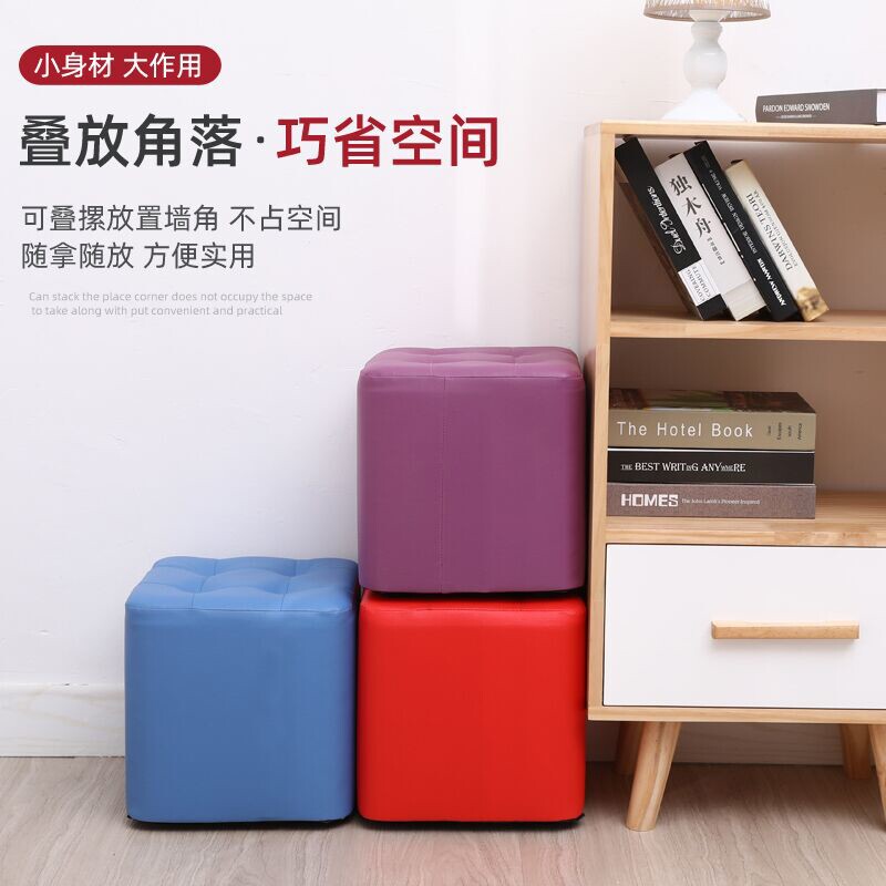家用小凳子皮墩凳客厅换鞋凳实木沙发凳网红板凳儿童方凳茶几矮凳