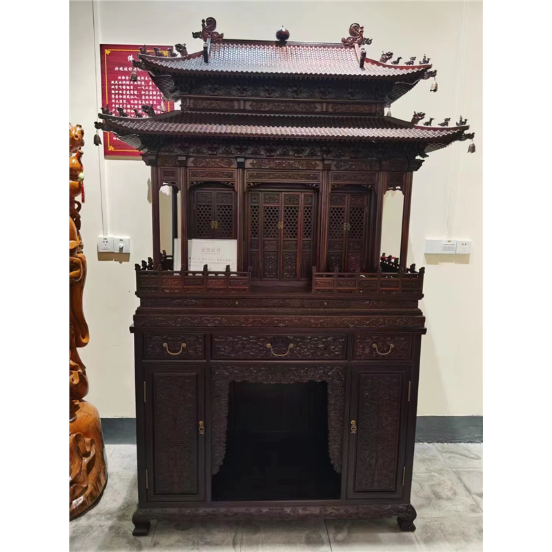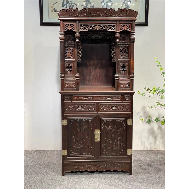 家用大红小叶佛龛神台供台紫檀交趾缅花老挝黄檀供奉财神观音酸枝