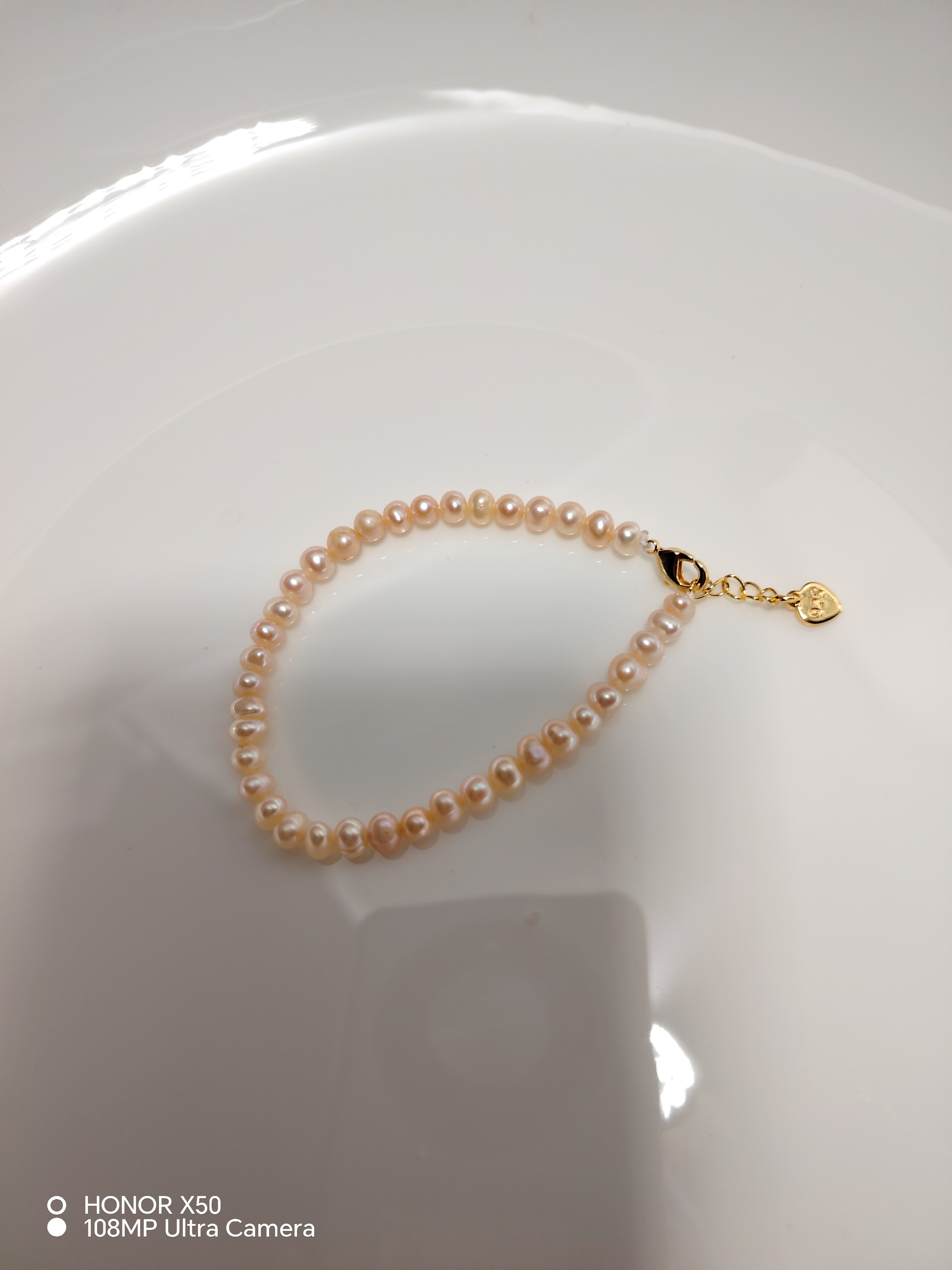 天然淡水有核珍珠手链5mm小珍珠精致秀气微微瑕,强光透亮