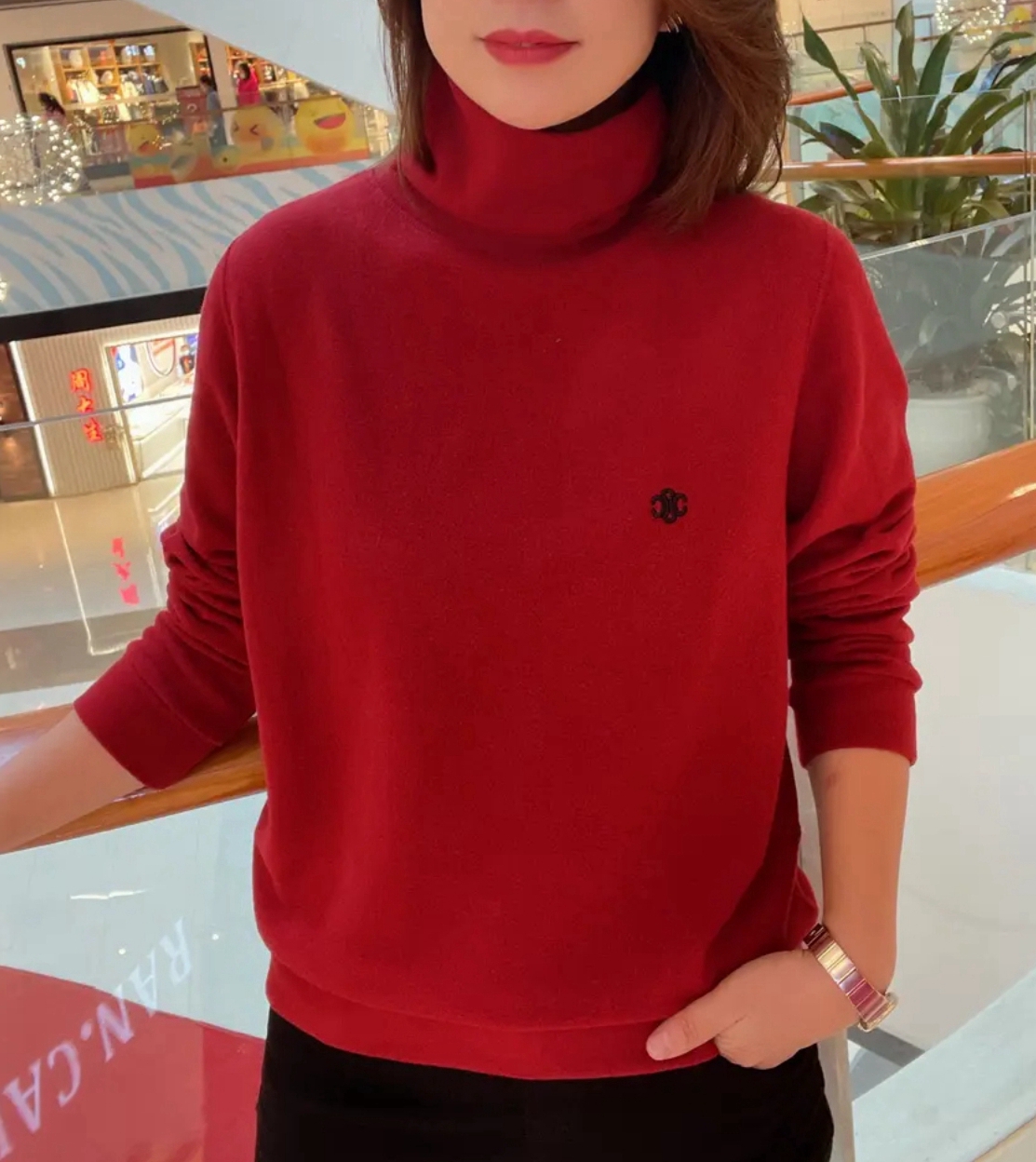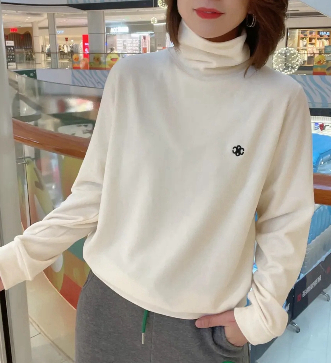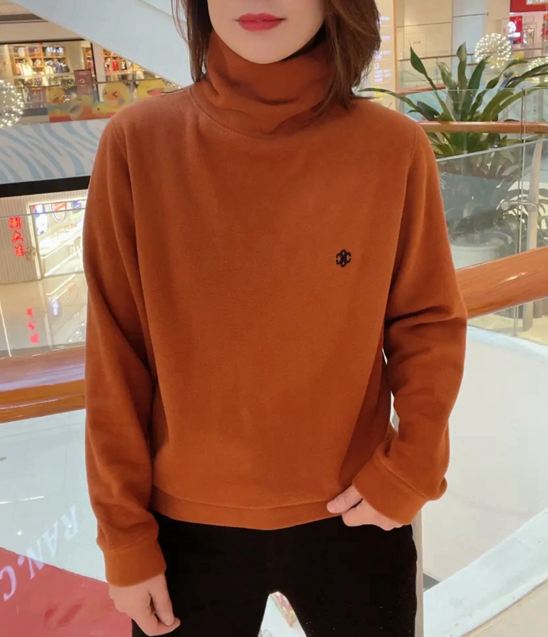 欧货长袖双面德绒高领上衣打底衫女2023冬季新款百搭加厚保暖卫衣