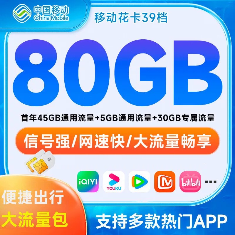 移动流量卡无线流量卡手机卡电话卡4G5G流量卡纯流量上网卡