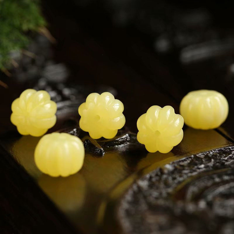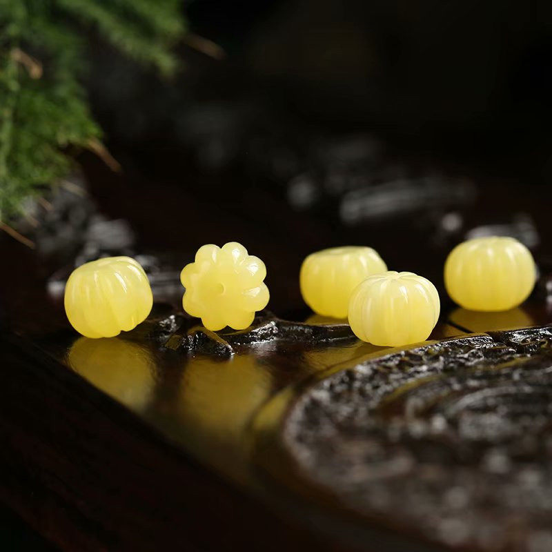 天然原石琥珀鸡油黄蜜蜡南瓜珠散珠子单珠串珠子隔珠耳坠文玩配饰