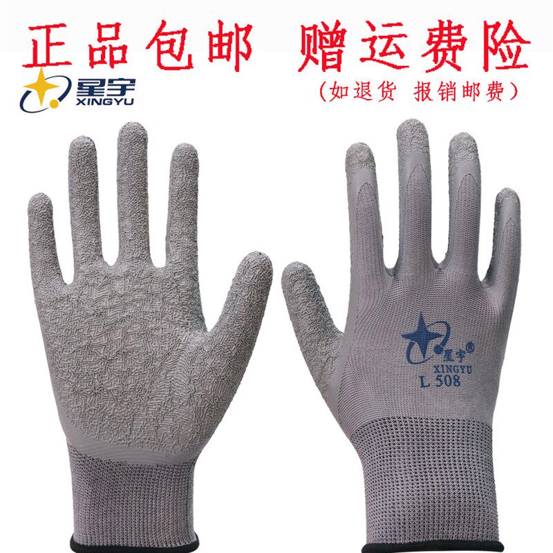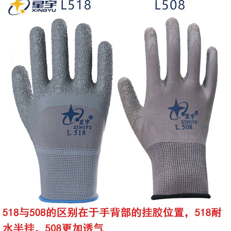 包邮星宇L508正品L518劳保z手套皱纹浸乳胶女士耐磨防滑透气左农