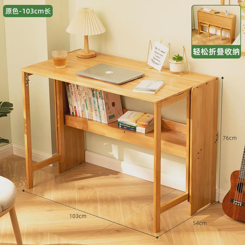 折叠书桌电脑工办公桌学生家用小型台式实木卧室床边写字桌子新款