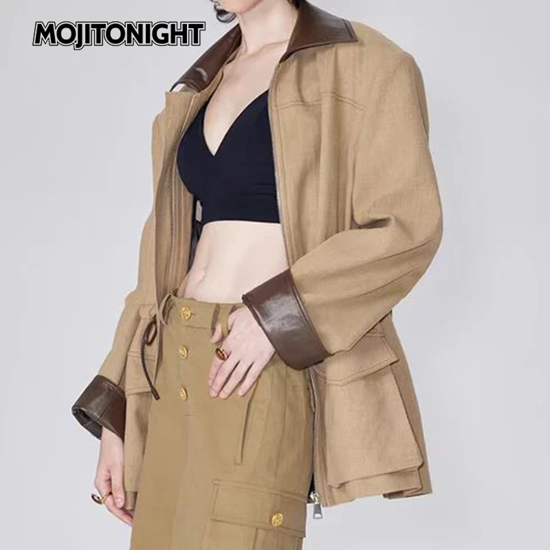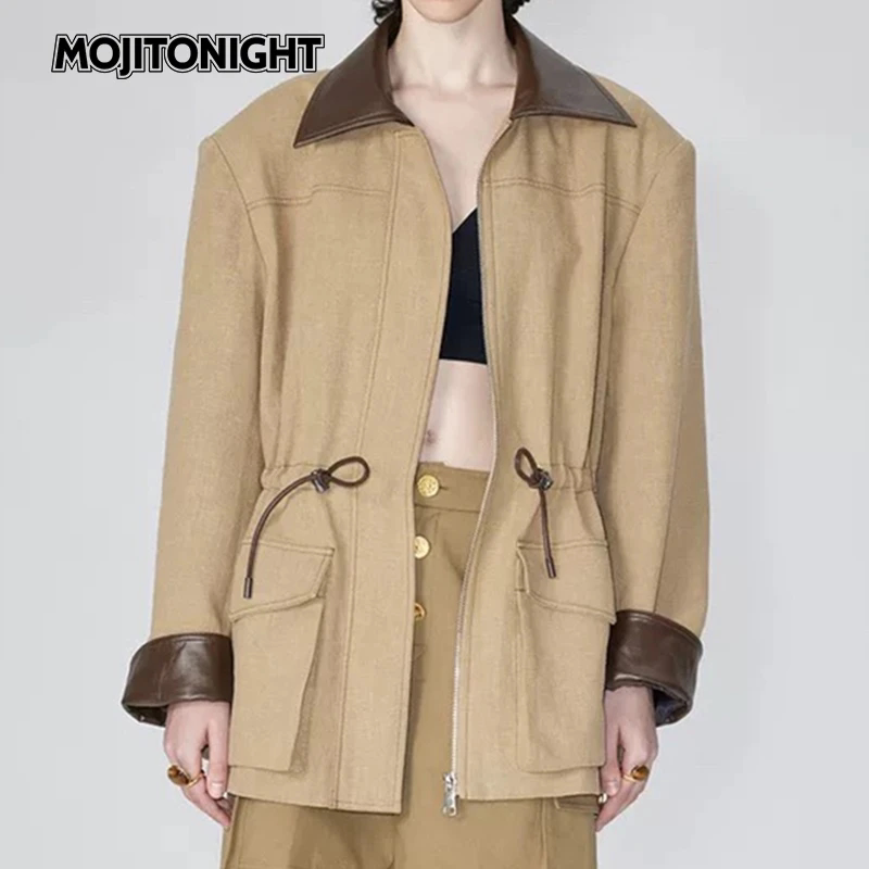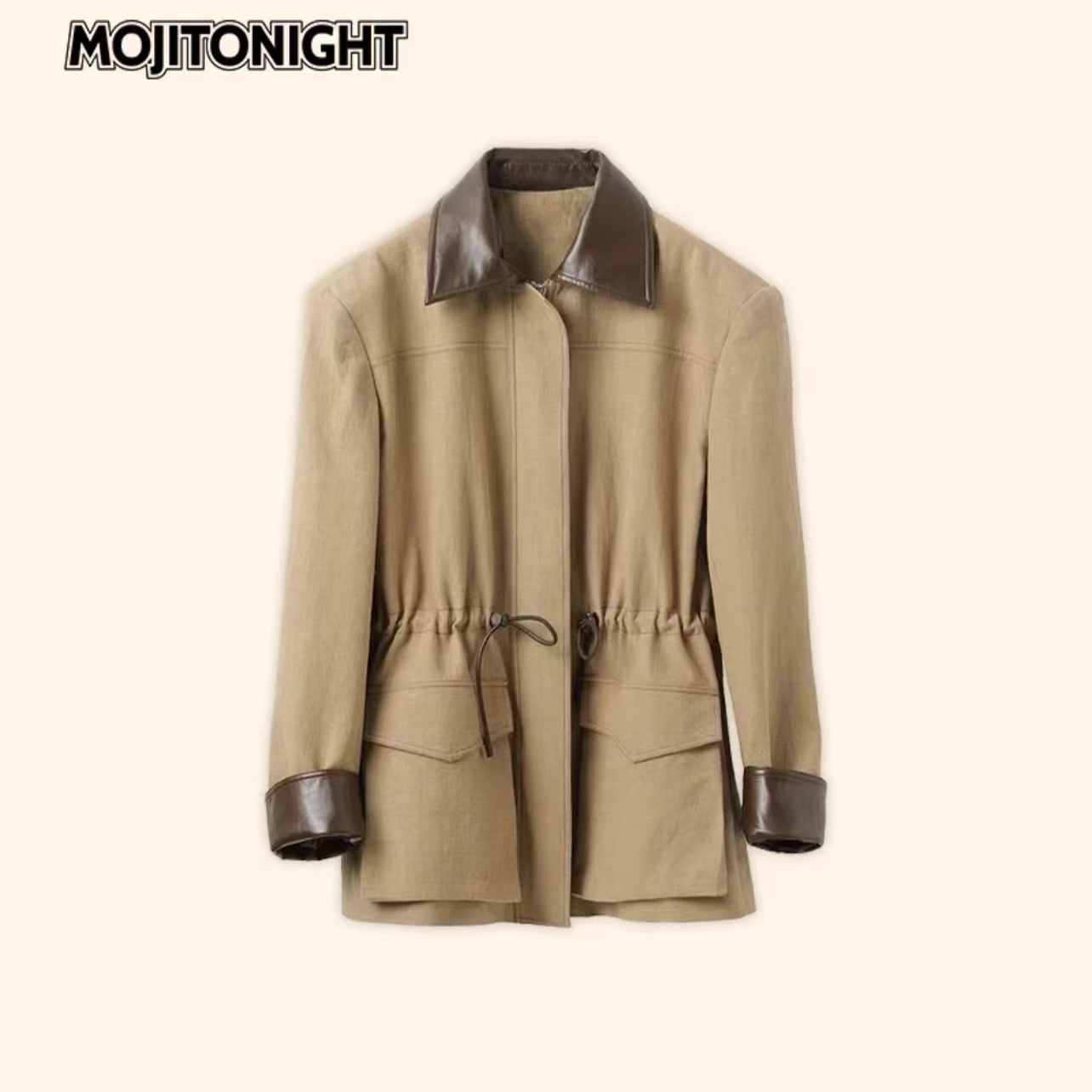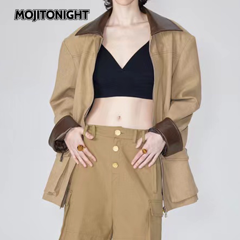 【昕怡粉丝专享】MOJITONIGHT小众设计款拼接风衣短外套#MJT8920