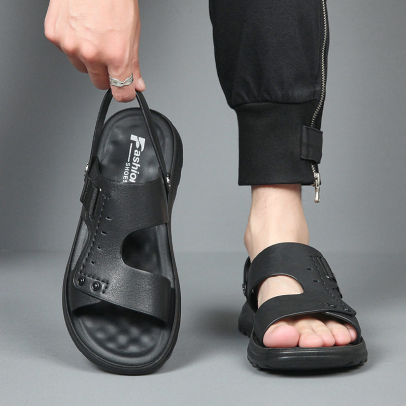 夏季奥伦男士凉鞋真皮夏季牛皮沙滩鞋开车外穿防滑两用爸爸男鞋