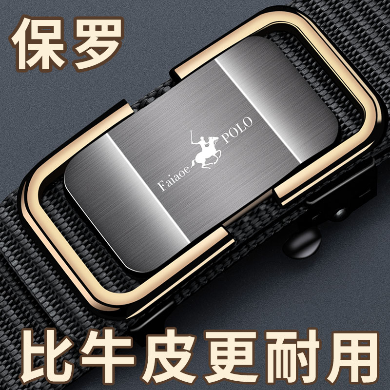 保罗男士皮带2024新款自动扣帆布腰带耐用透气舒适工装休闲潮裤带