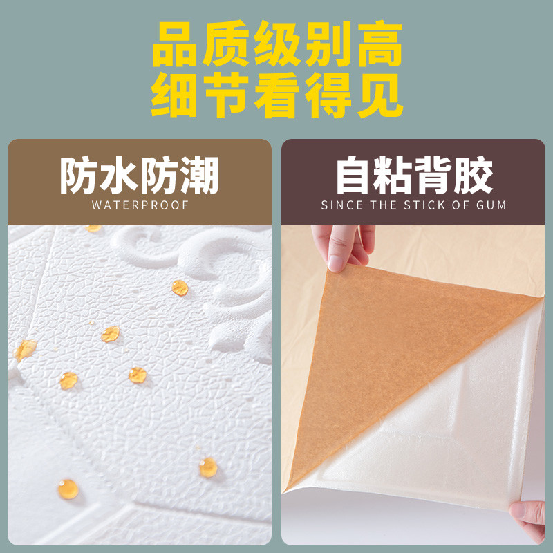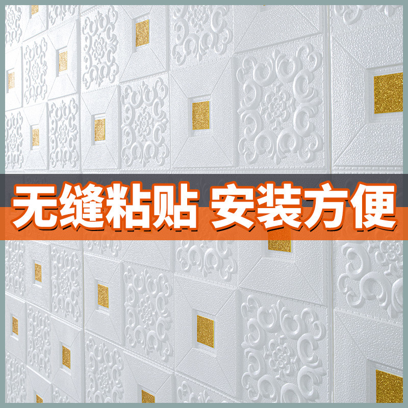 连卷墙纸自粘3d立体墙贴卧室温馨防水防潮壁纸天花板吊顶装饰贴纸