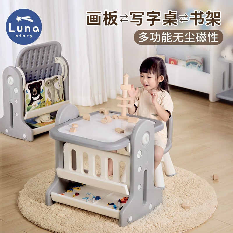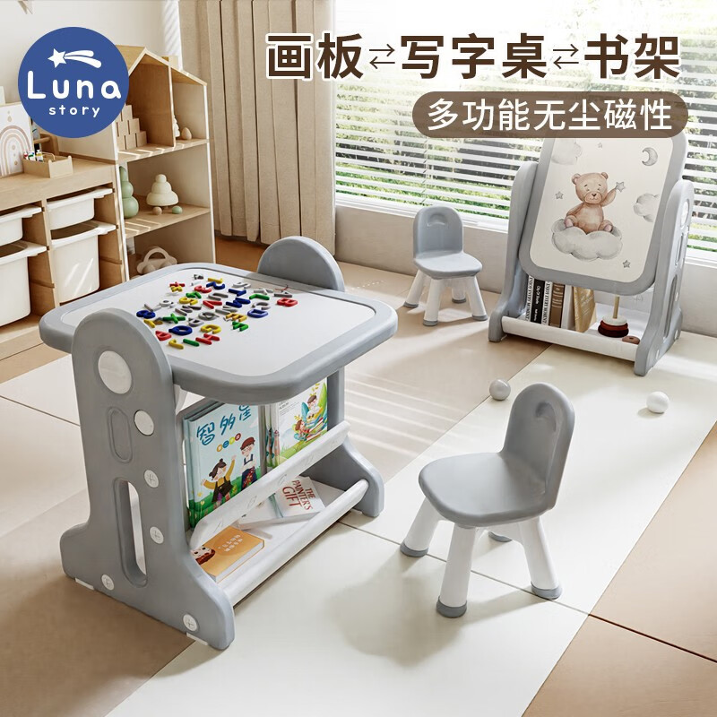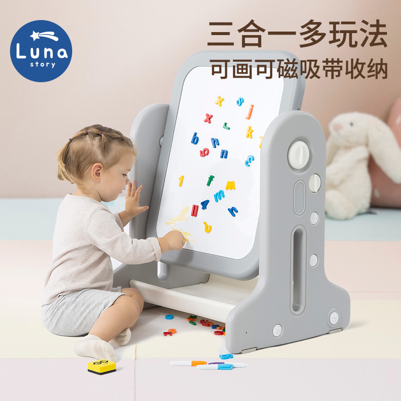 lunastory儿童涂鸦画板磁性写字板支架式宝宝小黑板学习桌椅家用