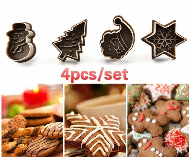 4Pcs/set Plastic Cookie Baking Moulds (Snowman/snowflake/chr