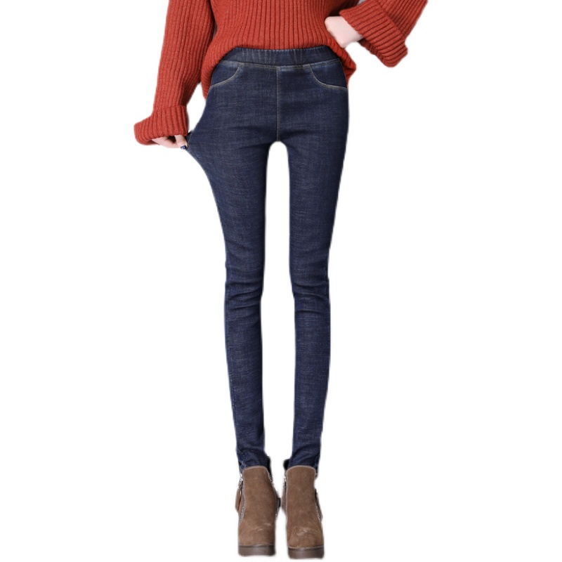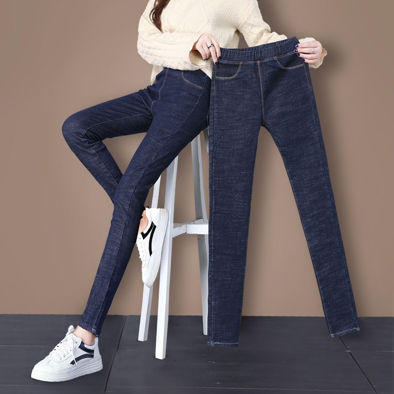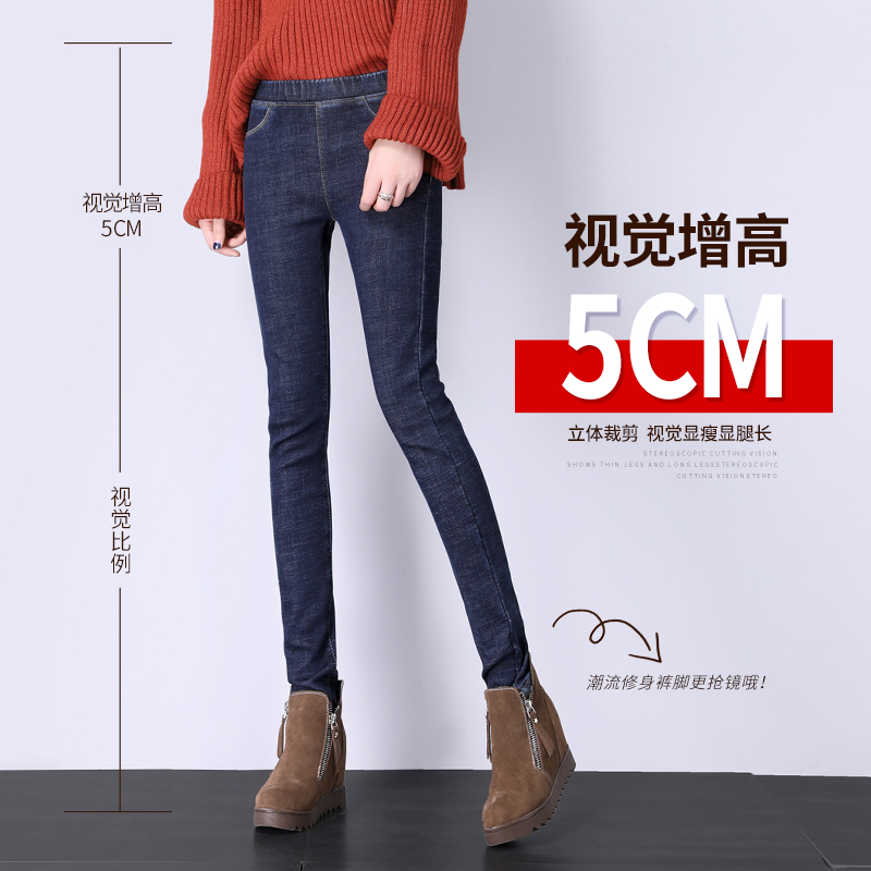 松紧腰牛仔裤女春季高腰加绒加厚紧身小脚2025年新款春季外穿裤子