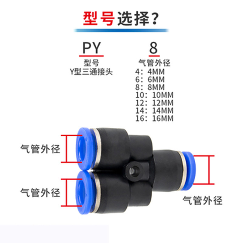 PY8 AKS艾克斯厂家气管快插接头PY-6-4-10-12-14-16mm气动Y型三通
