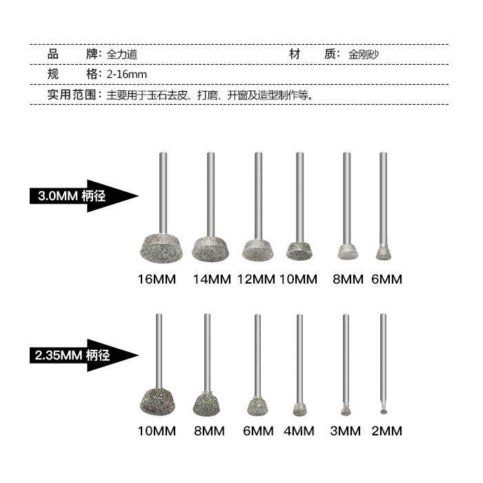 金刚石磨针E型压坨金刚砂磨头玉石翡翠琥珀玛瑙去皮打磨雕刻工具