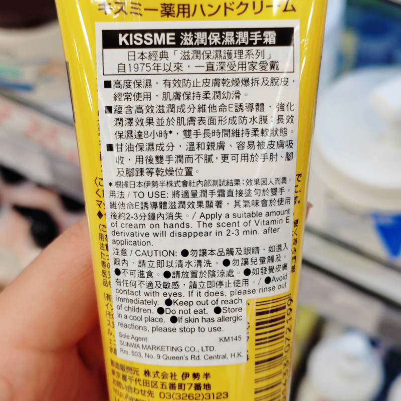 香港购日本kiss me奇士美护手霜维他命E润手霜滋润防止脱皮爆拆