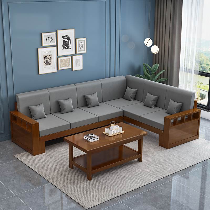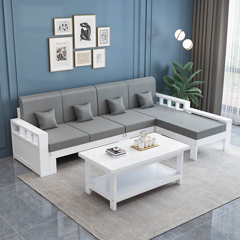 现代简约全实木沙发组合小户型三人位转角贵妃木质松木沙发新中式