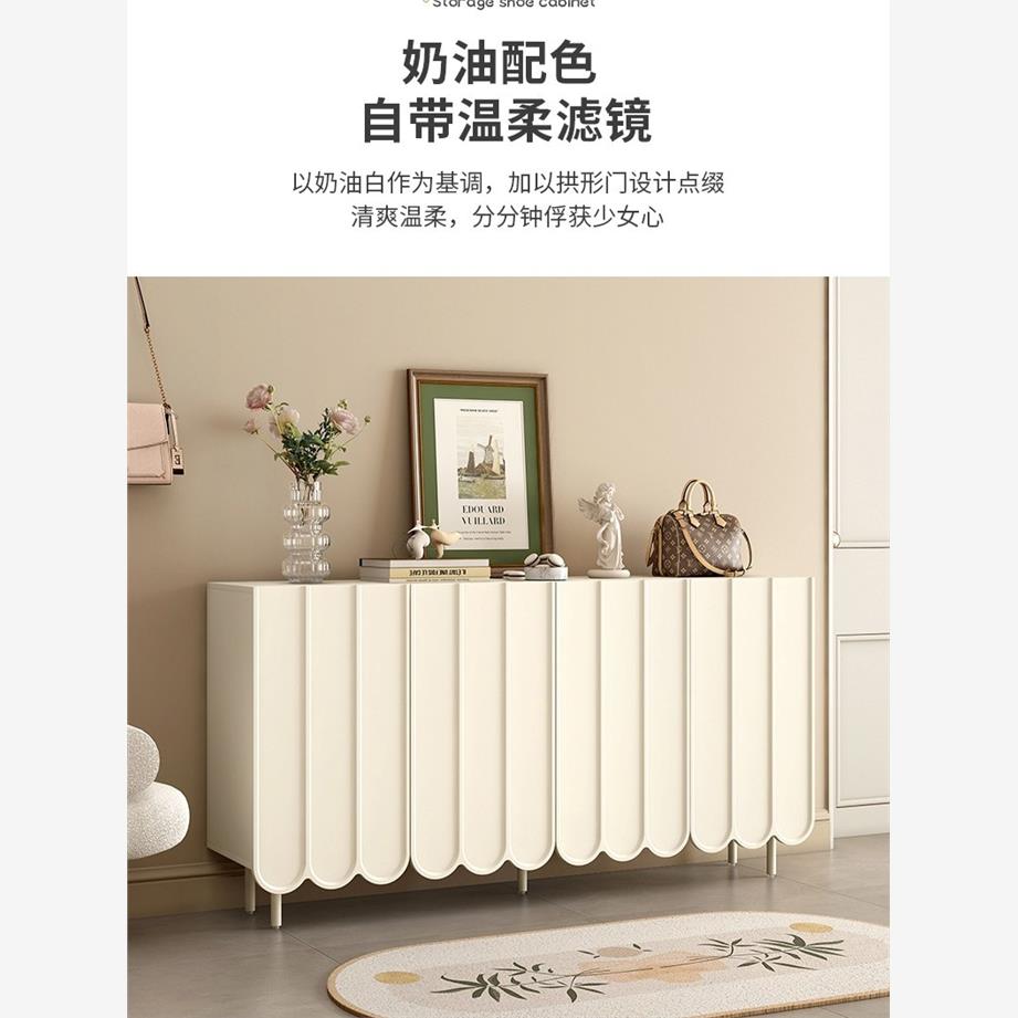 奶油风轻奢鞋柜家用门口靠墙入户玄关柜现代简约大容量阳台储物柜