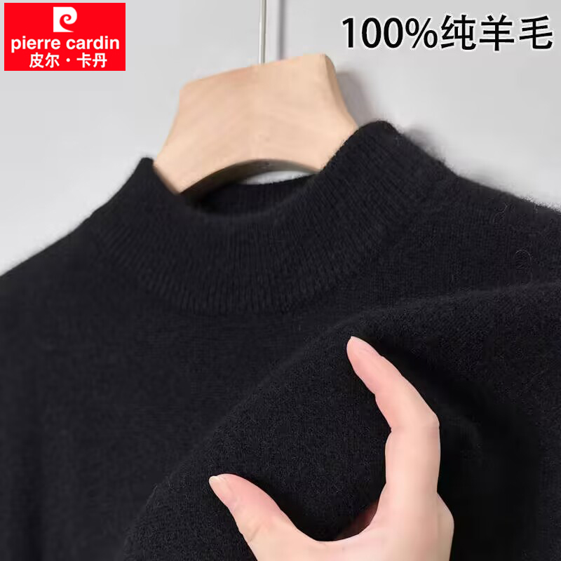 皮尔卡丹羊毛衫男冬季套头半高领保暖针织毛衣男士中年加厚羊毛衫