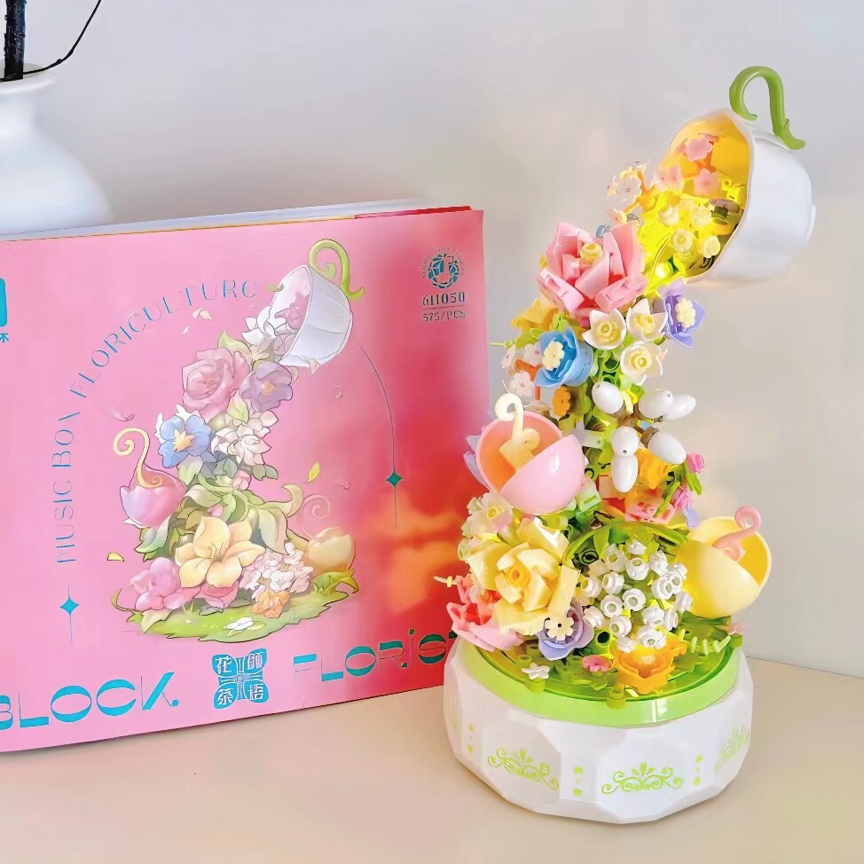 积木月涧花颜茶语音乐盒积木花坊小颗粒益智玩具女生情人节日