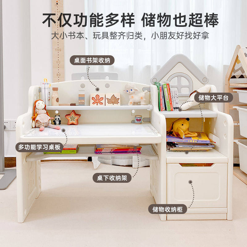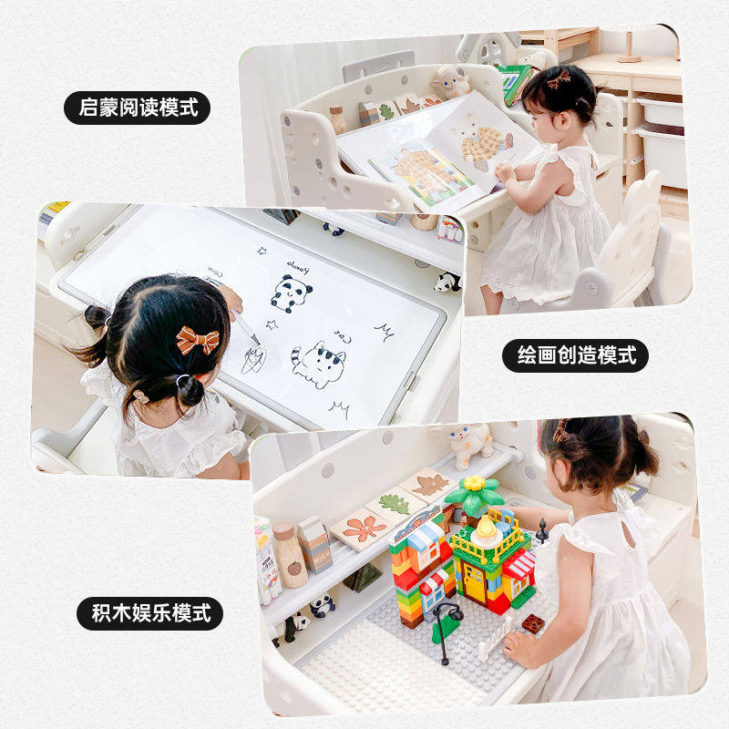 熊儿童多功能学习桌阅读书桌家用可升降桌子写字绘画玩具桌椅