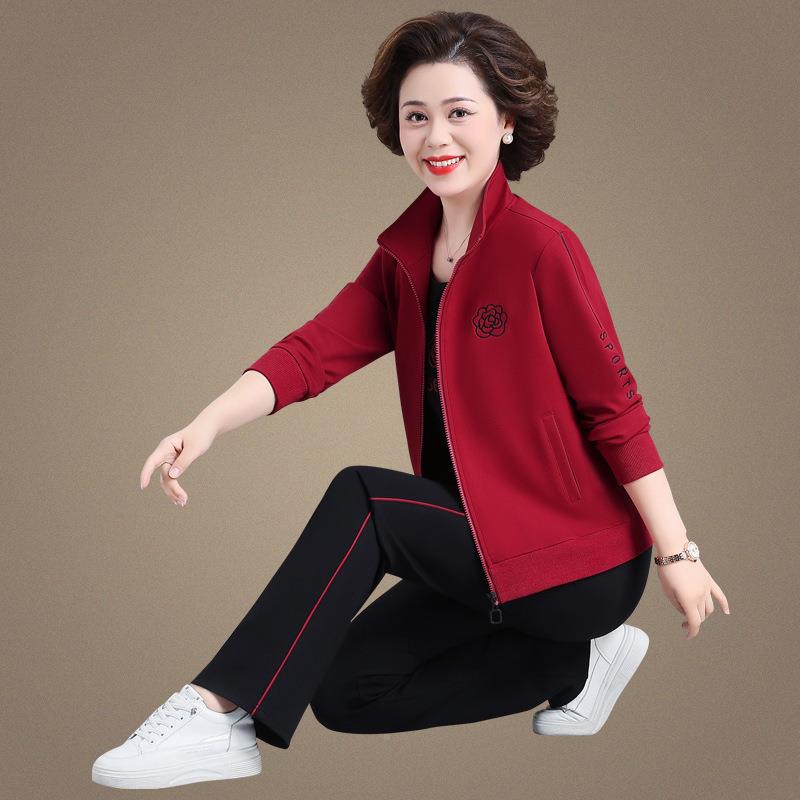妈妈休7280506闲套装女秋新老时尚洋气中年女款装秋春装外套三件