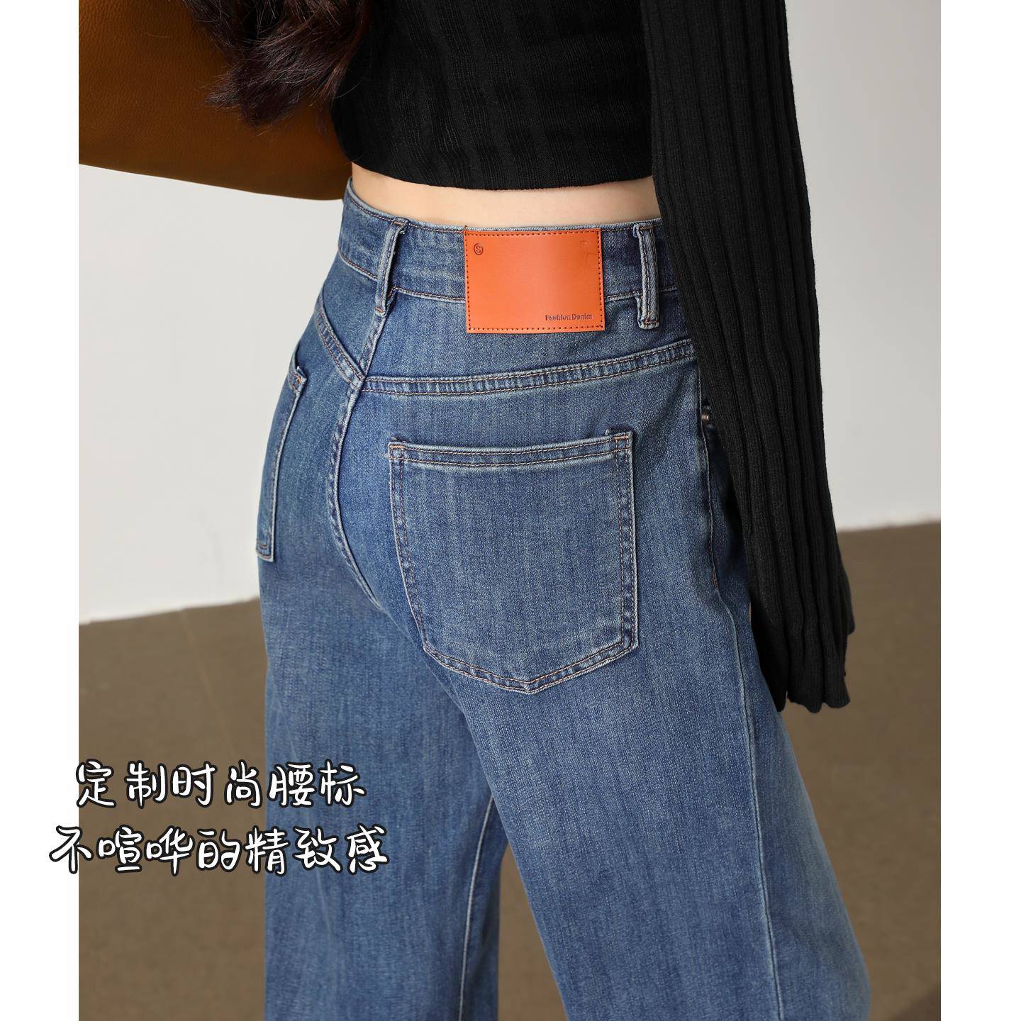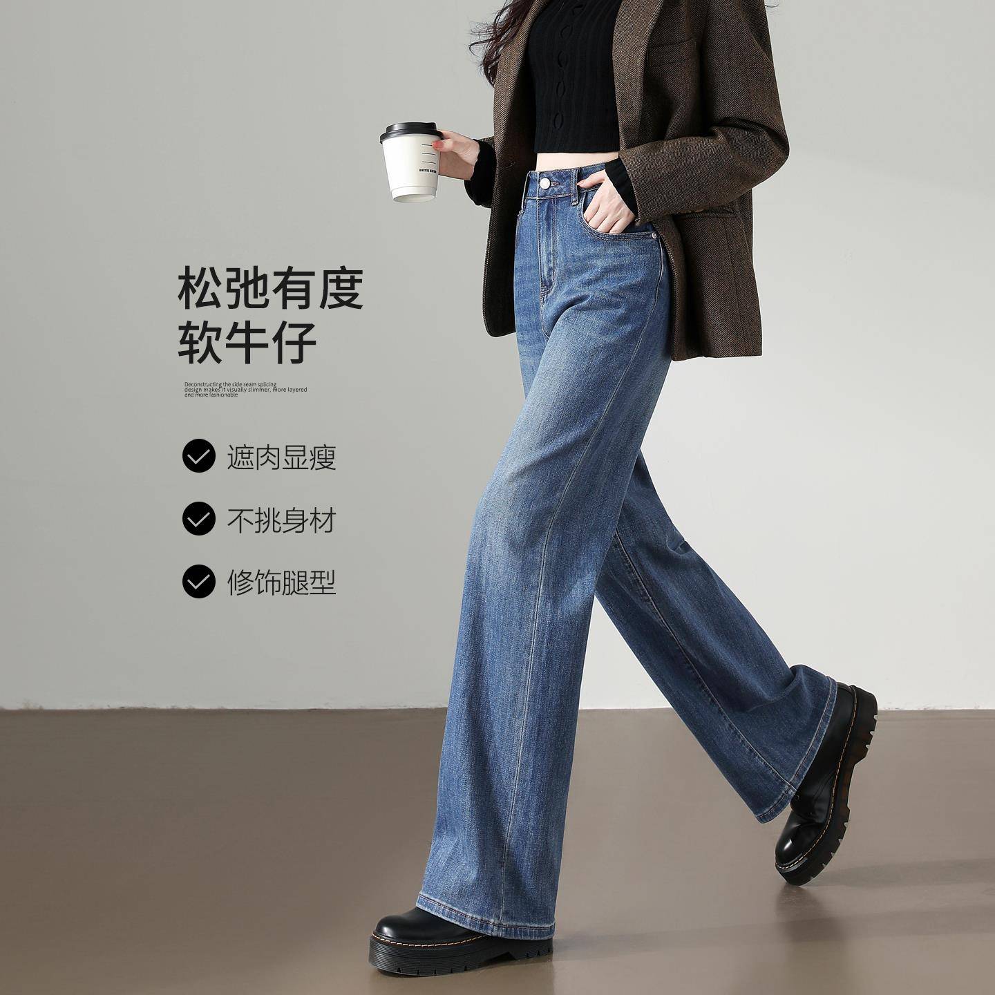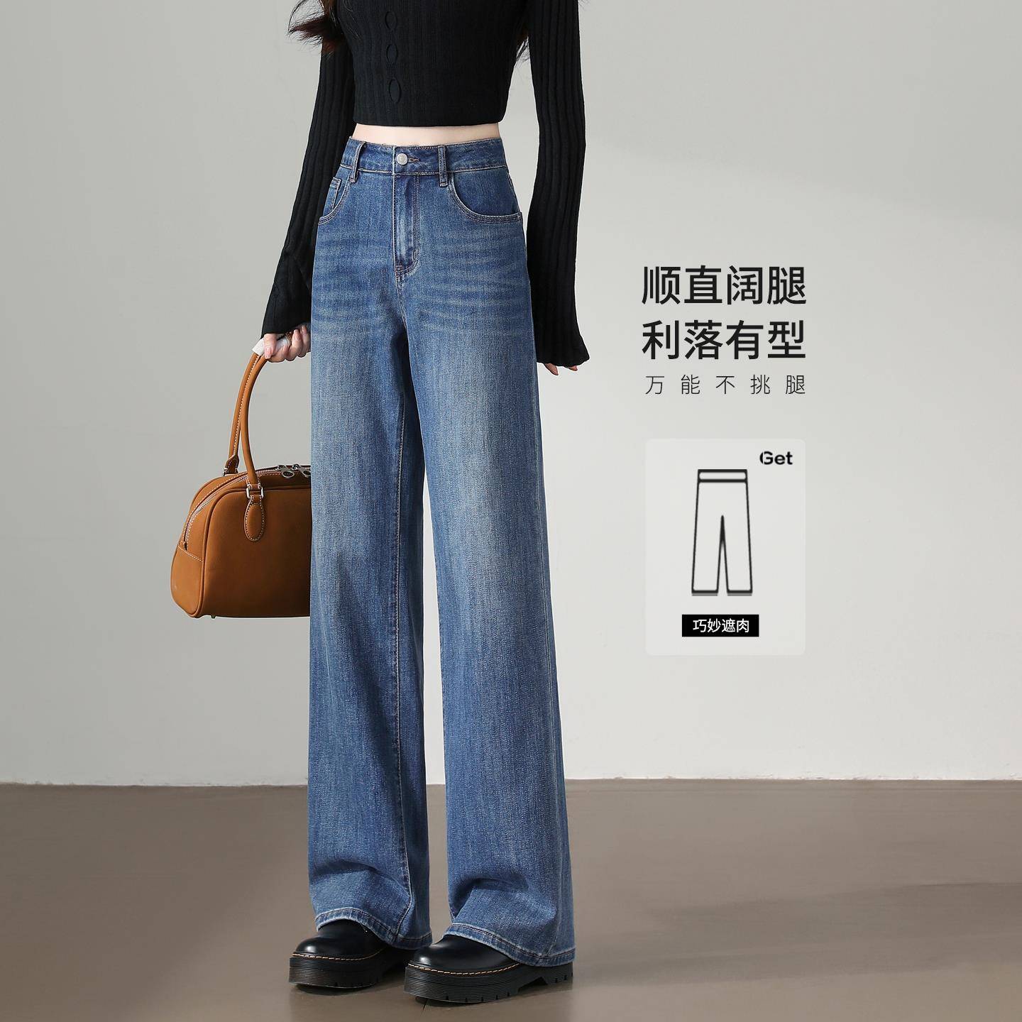窄版阔腿牛仔裤女高腰显瘦2025春秋季新款百搭小个子垂感直筒裤子